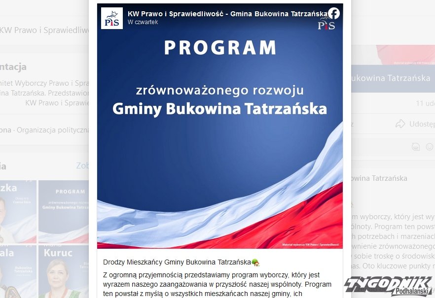 W mediach społecznościowych komitet wyborczy PiS w gminie Bukowina Tatrzańska zaprezentował program. Dyskusji na temat programu jednak prowadzić nie można, bo komentarze pod postem zablokowano.