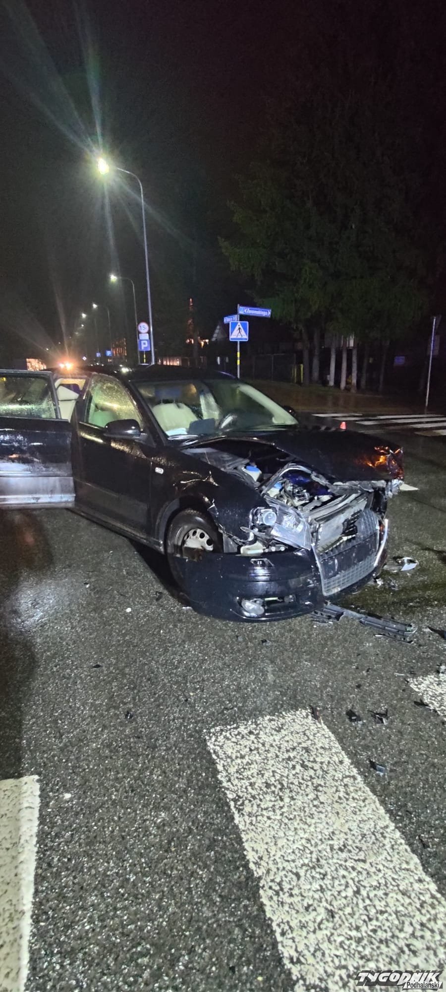 Jedna osoba poszkodowana w zderzeniu dwóch aut osobowych.
