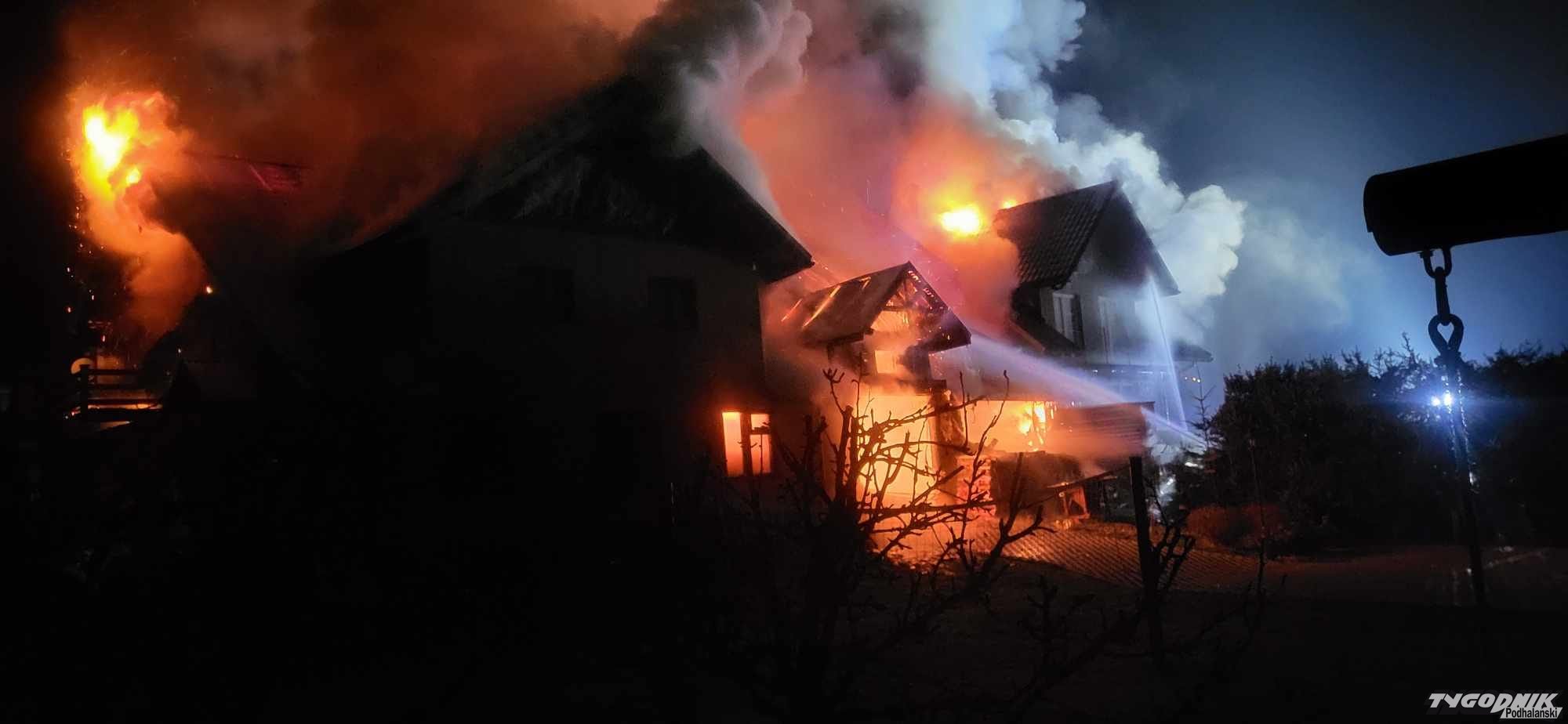 Płomienie pojawiły się wczoraj w nocy - krótko przed północą. Jak informuje dyżurny, nowotarskiej Komendy Powiatowej Państwowej Straży Pożarnej w Nowym Targu - pożar szybko się rozwinął obejmując dwa budynki mieszkalne i jeden gospodarczy. Działania strażaków trwały do białego rana. Mimo wysiłków wszystkie budynki zostały mocno uszkodzone. W akcji gaśniczej brało udział 14 strażackich zastępów. Ostatnie powróciły do remiz o poranku.
