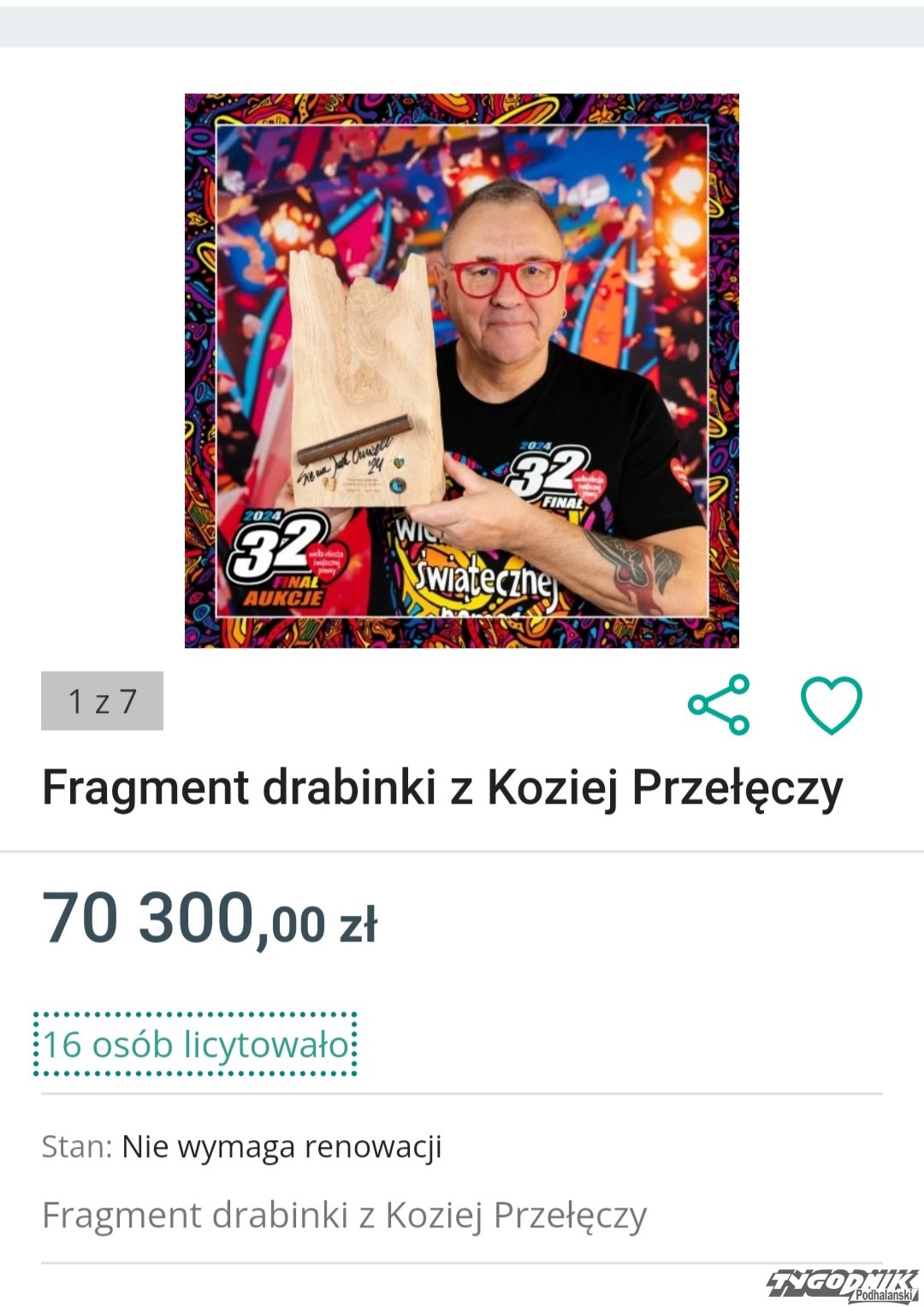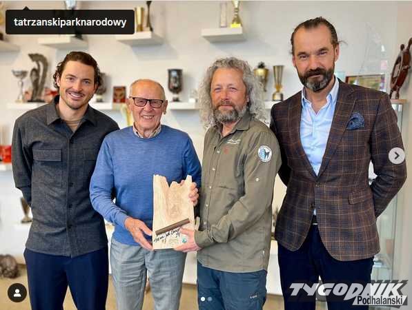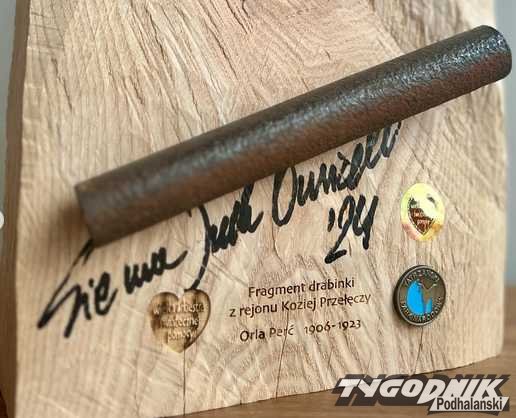 Statuetka z ponad 100-letnim fragmentem drabinki z Koziej Przełęczy została wręczona przez dyrektora TPN, Szymona Ziobrowskiego, zwycięzcy licytacji na aukcji WOŚP - Sobiesławowi Zasadzie, który odebrał ją w imieniu Grupy Zasada.
