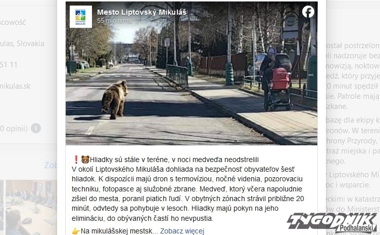 Wczoraj w Liptowskim Mikulaszu na Słowacji biegający po ulicach niedźwiedź zranił pięć osób. Zebrał się sztab antykryzysowy i zapadła decyzja dotycząca zwierzęcia.