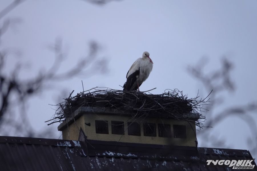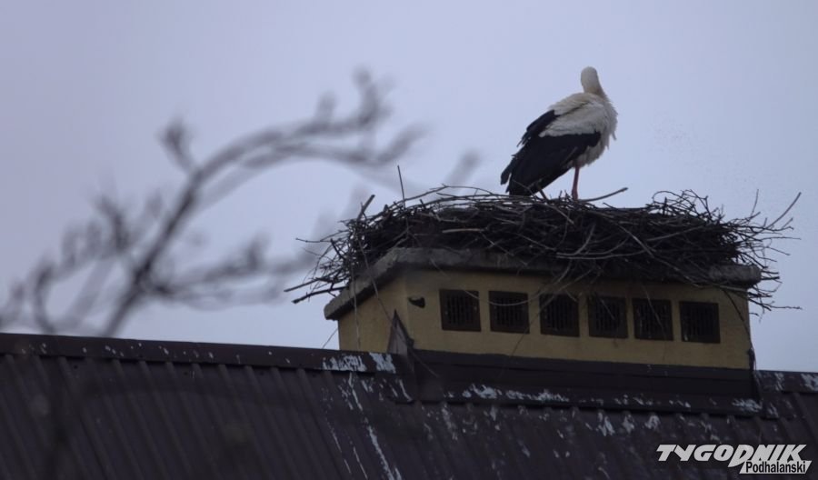 W pierwszego dzień wiosny o 17.20 z radością powitaliśmy wyjątkowego gościa - bociana, który powrócił do gniazda na dachu szkoły w Tylmanowej.