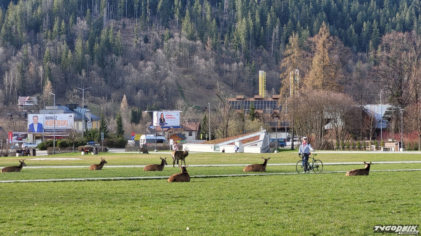 Ktoś lub coś spłoszyło stado łań, które wbiegły wprost na ulicę Kościuszki w Zakopanem.