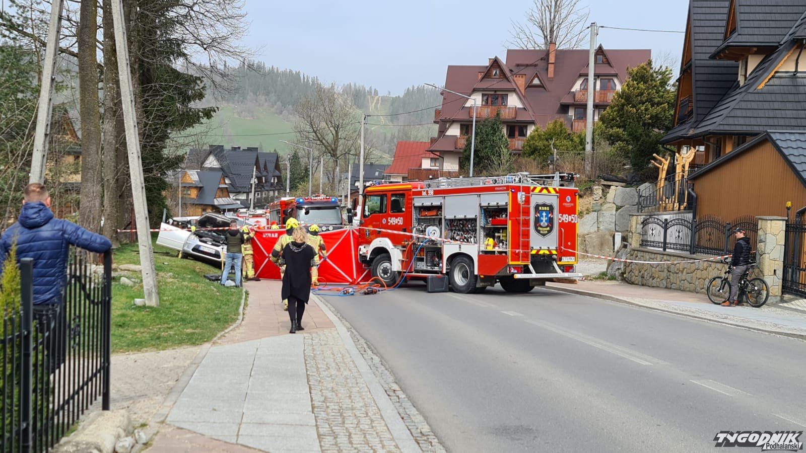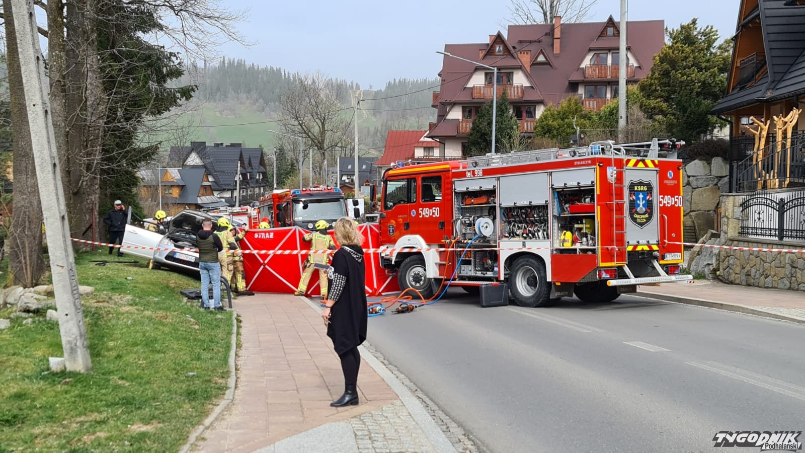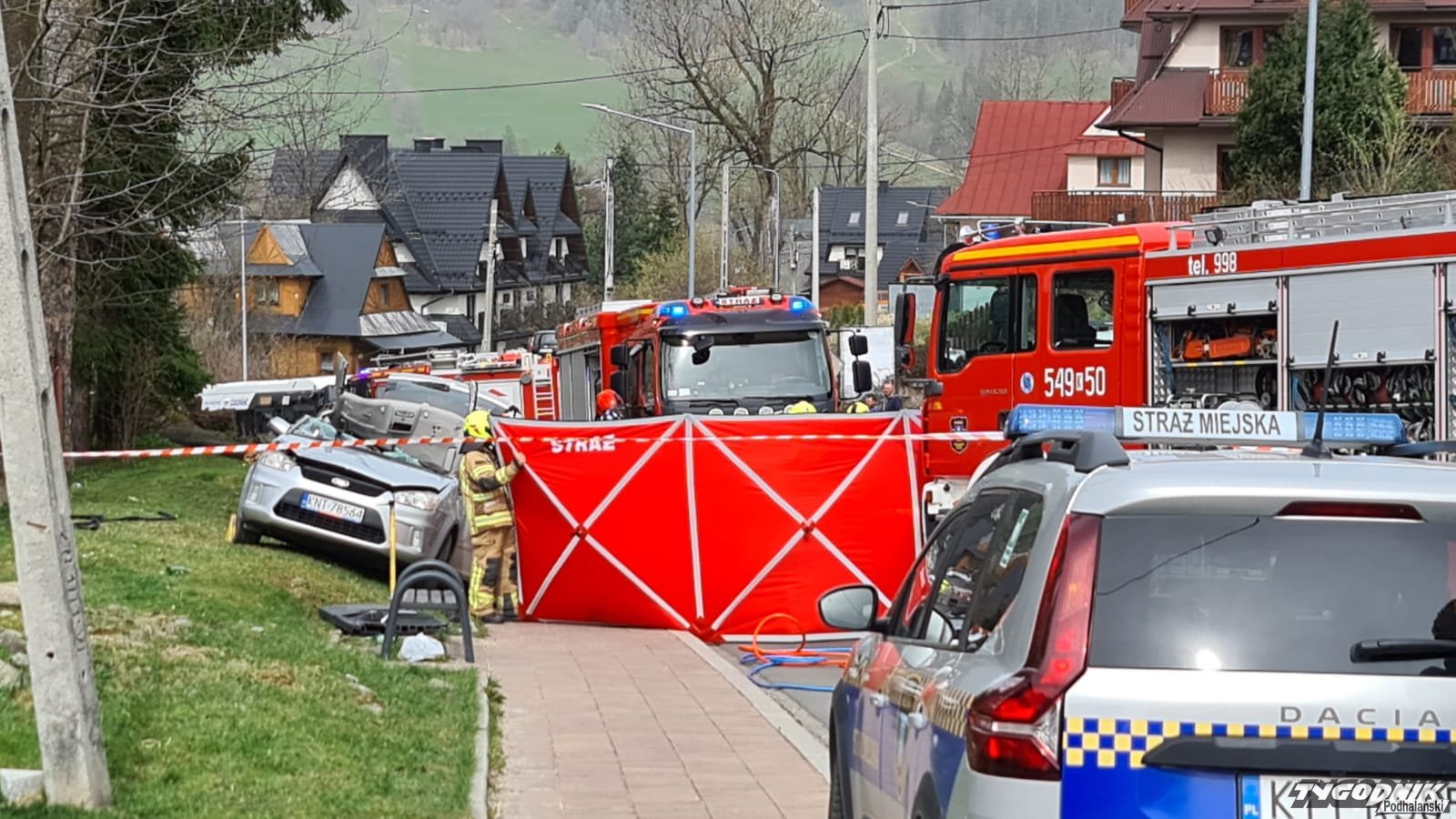 Wypadek zdarzył się na Olczy - Stachoniach w Zakopanem. Wiatr wywrócił drzewo, które runęło na jadący samochód. Na miejscu trwa akcja ratunkowa. Prowadzą ją strażacy z Zakopanego. Jest także policja i załoga karetki pogotowia. Ratownicy udzielali rannej kobiecie pomocy. Trwała jej reanimacja. Niestety, nie udało się jej uratować. Droga jest całkowicie zablokowana.
