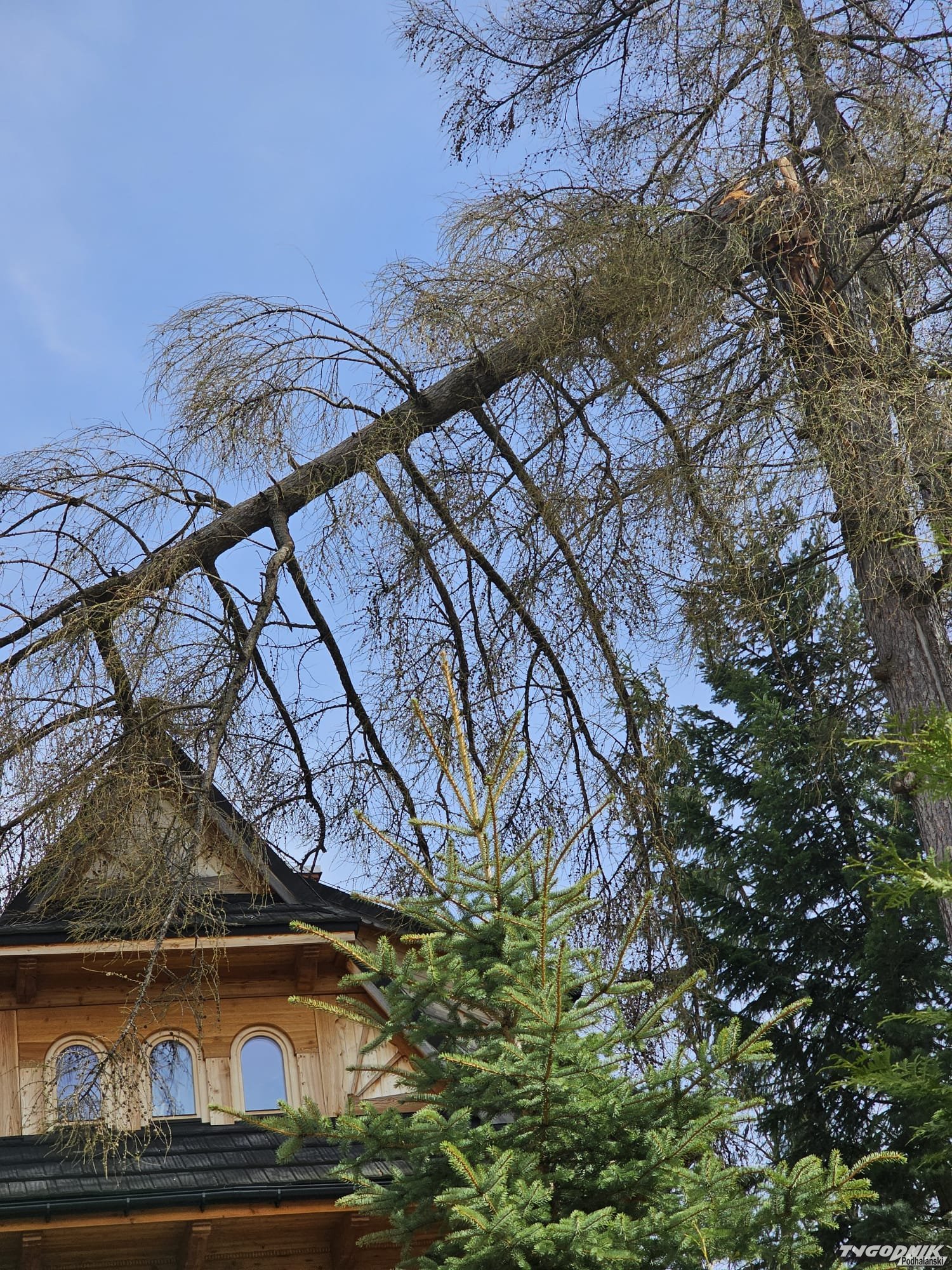 Na ul. Za Strugiem w Zakopanem wiatr złamał jedno z drzew.