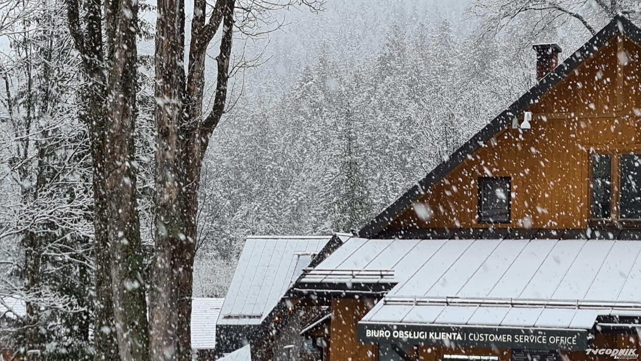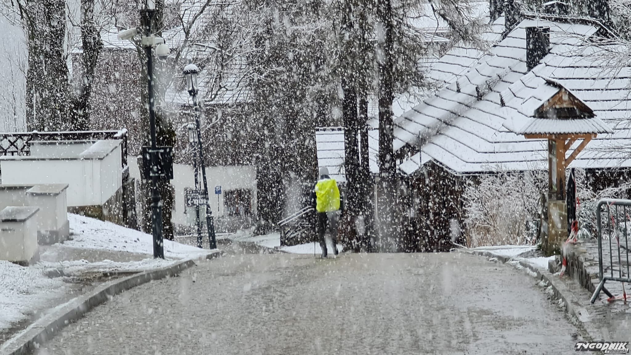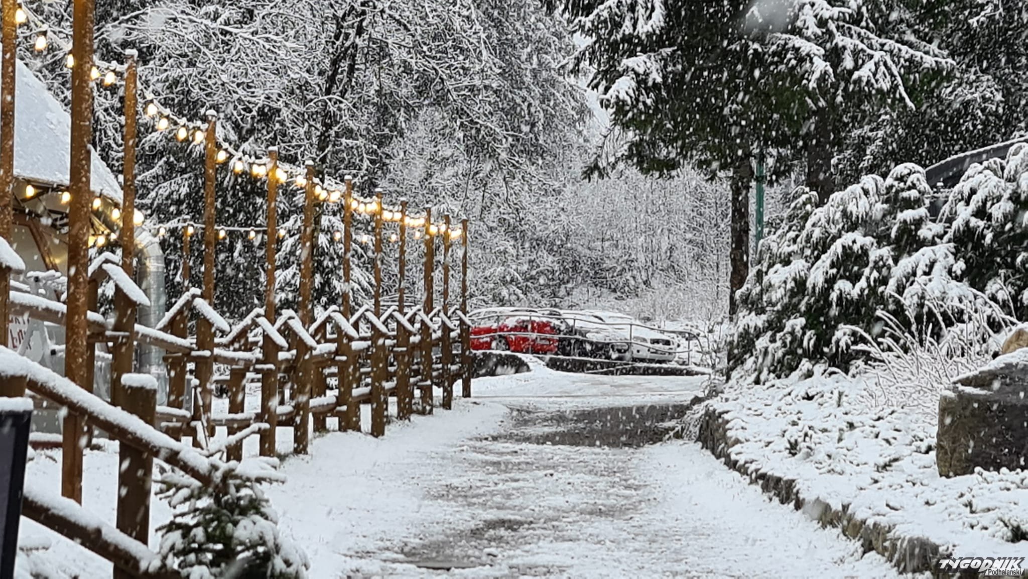 Śnieg jest co prawda mokry. W niżej położonym centrum nie zostawia po sobie śladu, ale wyżej (na filmach i zdjęciach Pardałówka i Kuźnice) widać już biała warstwę.