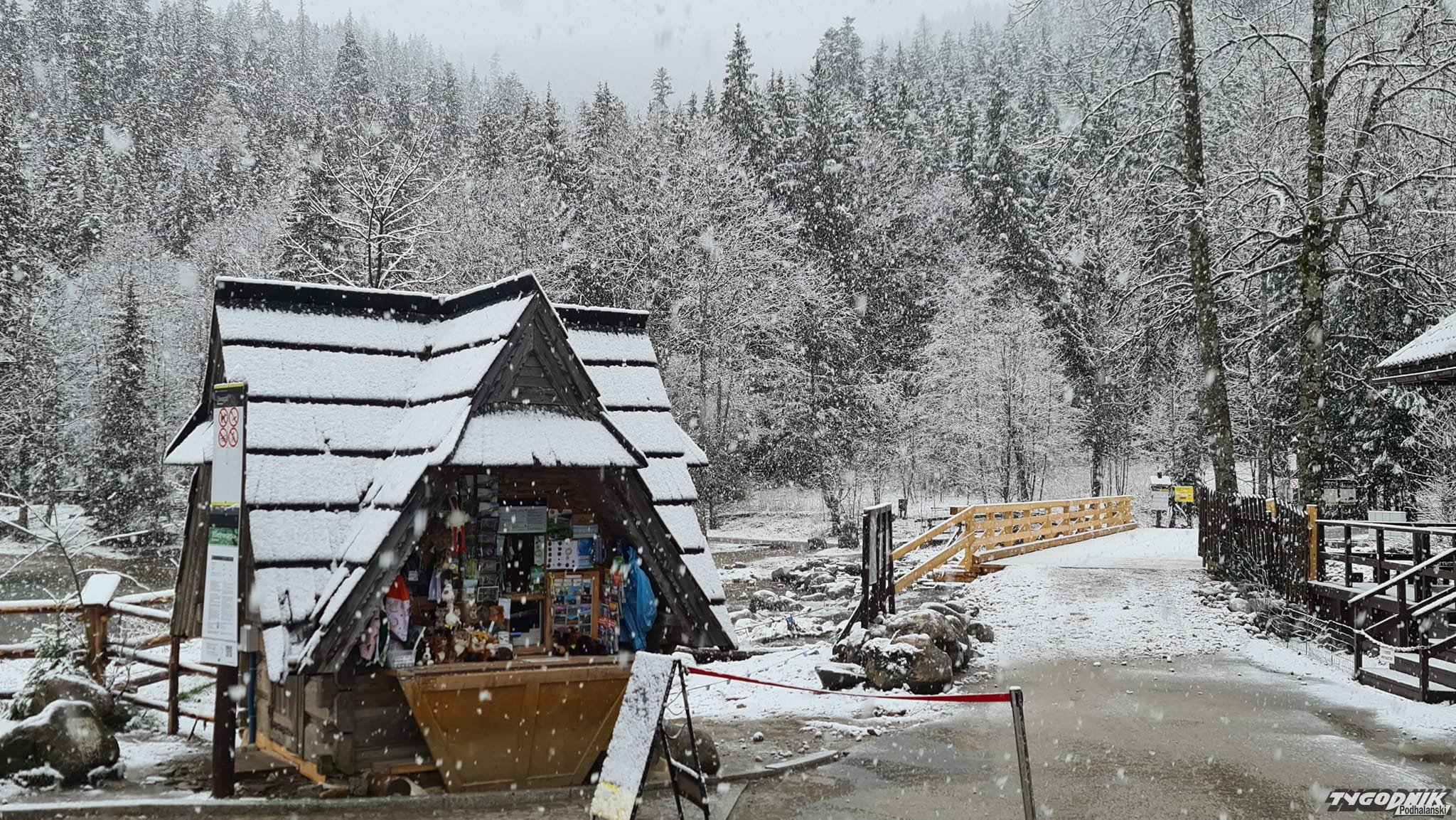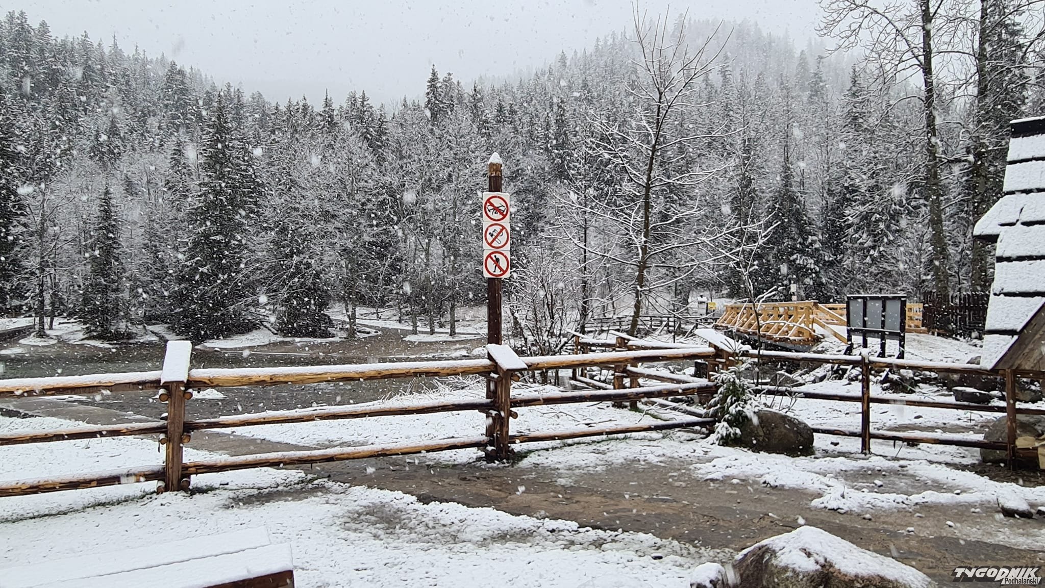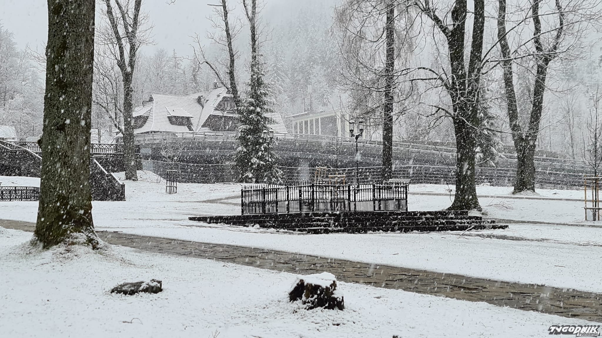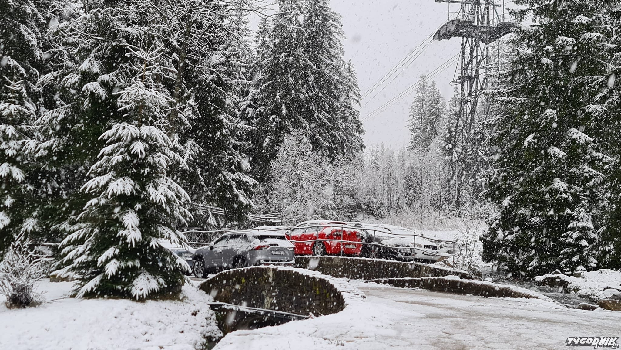 Śnieg jest co prawda mokry. W niżej położonym centrum nie zostawia po sobie śladu, ale wyżej (na filmach i zdjęciach Pardałówka i Kuźnice) widać już biała warstwę.