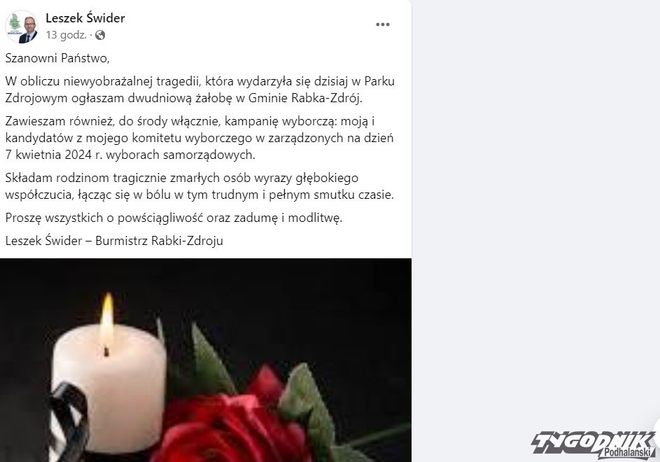 Burmistrz Rabki zawiesza kampanię wyborczą
