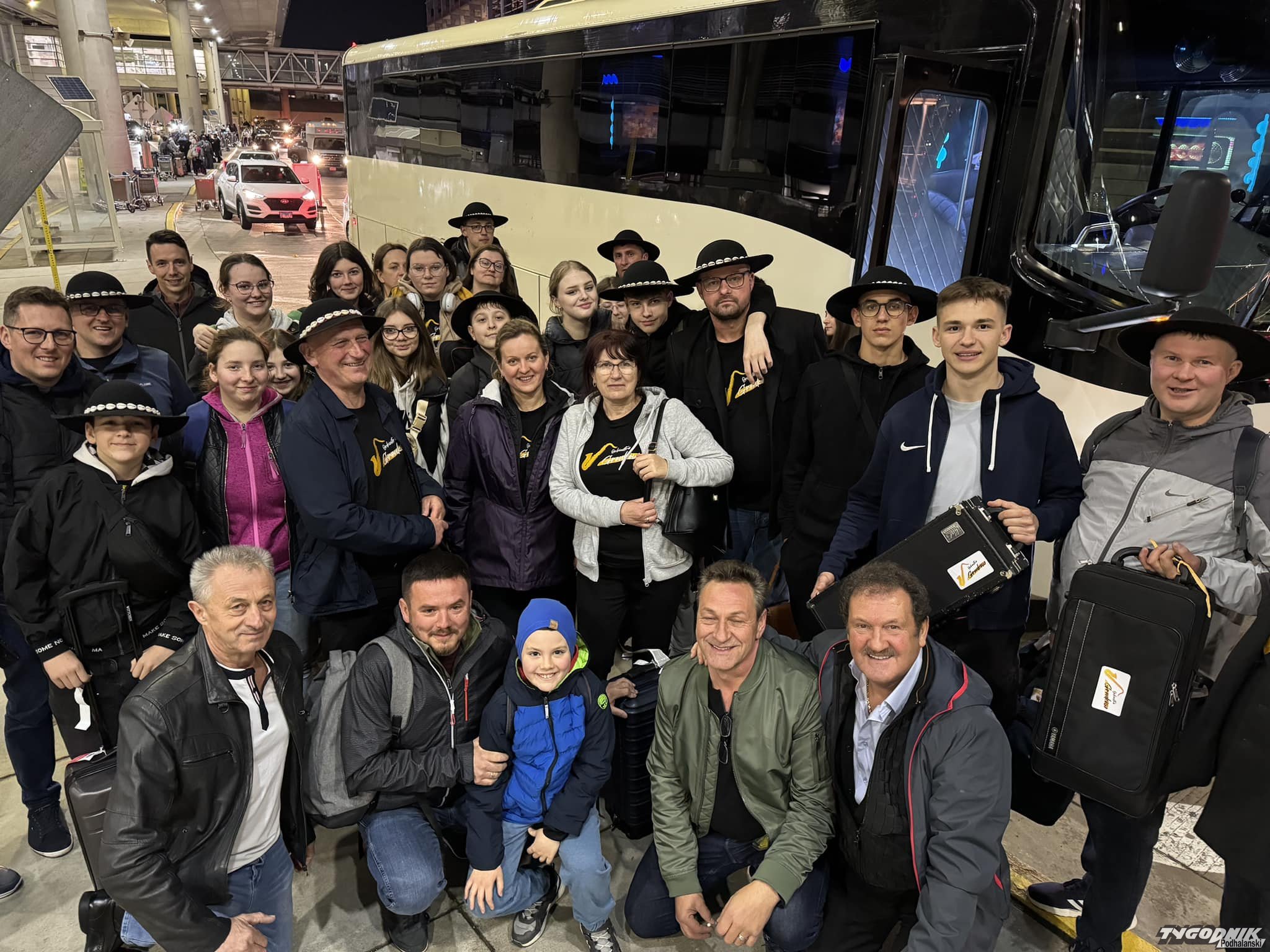 Na zdj. Orkiestra Dęta w Gronkowie po wylądowaniu w Chicago.