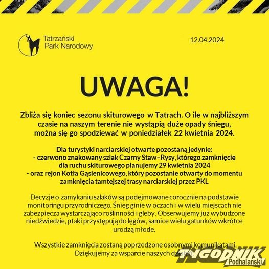 Tatrzański Park Narodowy zapowiada zbliżający się koniec sezonu skiturowego w Tatrach.