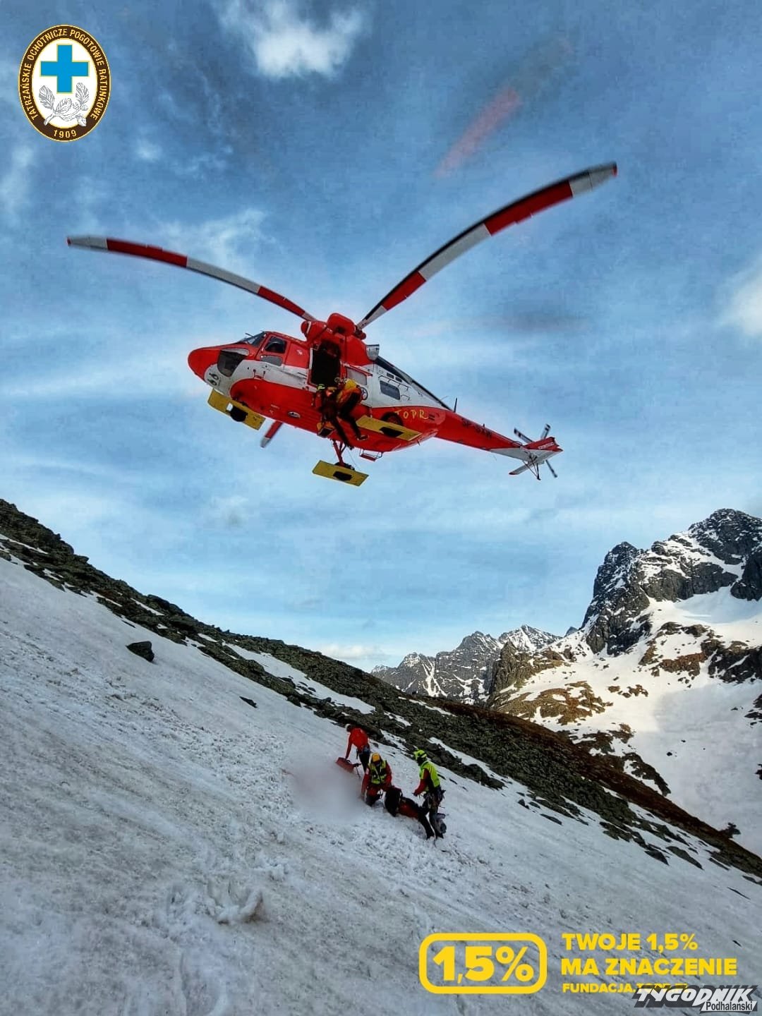 Do poważnego wypadku doszło podczas schodzenia 6 osobowej grupy turystów ze Szpiglasowej Przełęczy. Jedna z turystek na stromych śniegach upadła z wysokości i w stanie ciężkim została przetransportowana śmigłowcem do szpitala w Nowym Targu. Ewakuacji śmigłowcem wymagali również towarzysze poszkodowanej. Do podobnego zdarzenia doszło podczas schodzenia grupy turystów z Przełęczy Krzyżne w kierunku Doliny 5 Stawów Polskich. Tutaj turyści mieli więcej szczęścia i bez obrażeń śmigłowcem przetransportowano ich do Schroniska w Stawach. Śmigłowcem ewakuowano również turystę z urazem kończyny dolnej z Progu Zmarłego Stawu.