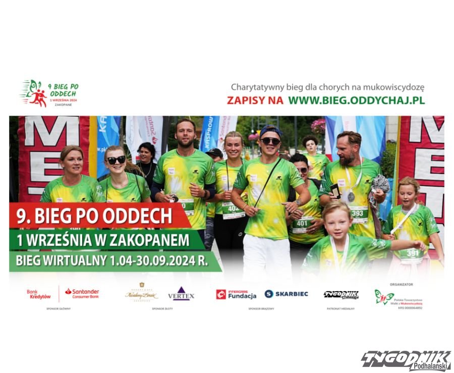 Zapisy na 9. edycję „Biegu po Oddech”, zarówno na bieg wirtualny, jak i ten w Zakopanem, rozpoczęły się już 1 kwietnia na stronie www.bieg.oddychaj.pl. Na uczestników czekają zaprojektowane specjalnie na bieg techniczne koszulki Attiq i wyjątkowe medale, a po biegu w Zakopanem poczęstunek, a także charytatywny piknik rodzinny, w nim zabawy i konkursy z nagrodami dla uczestników biegu i ich rodzin.