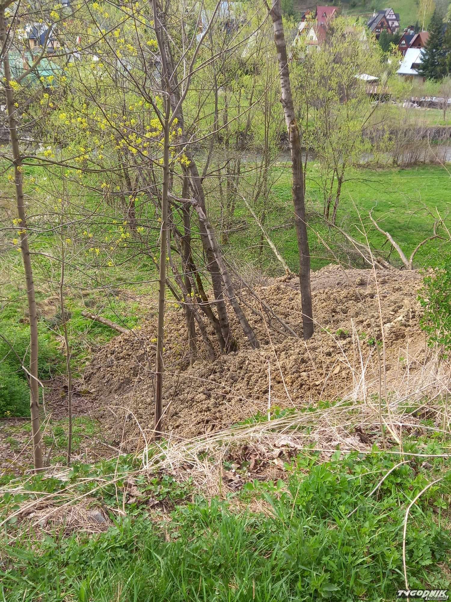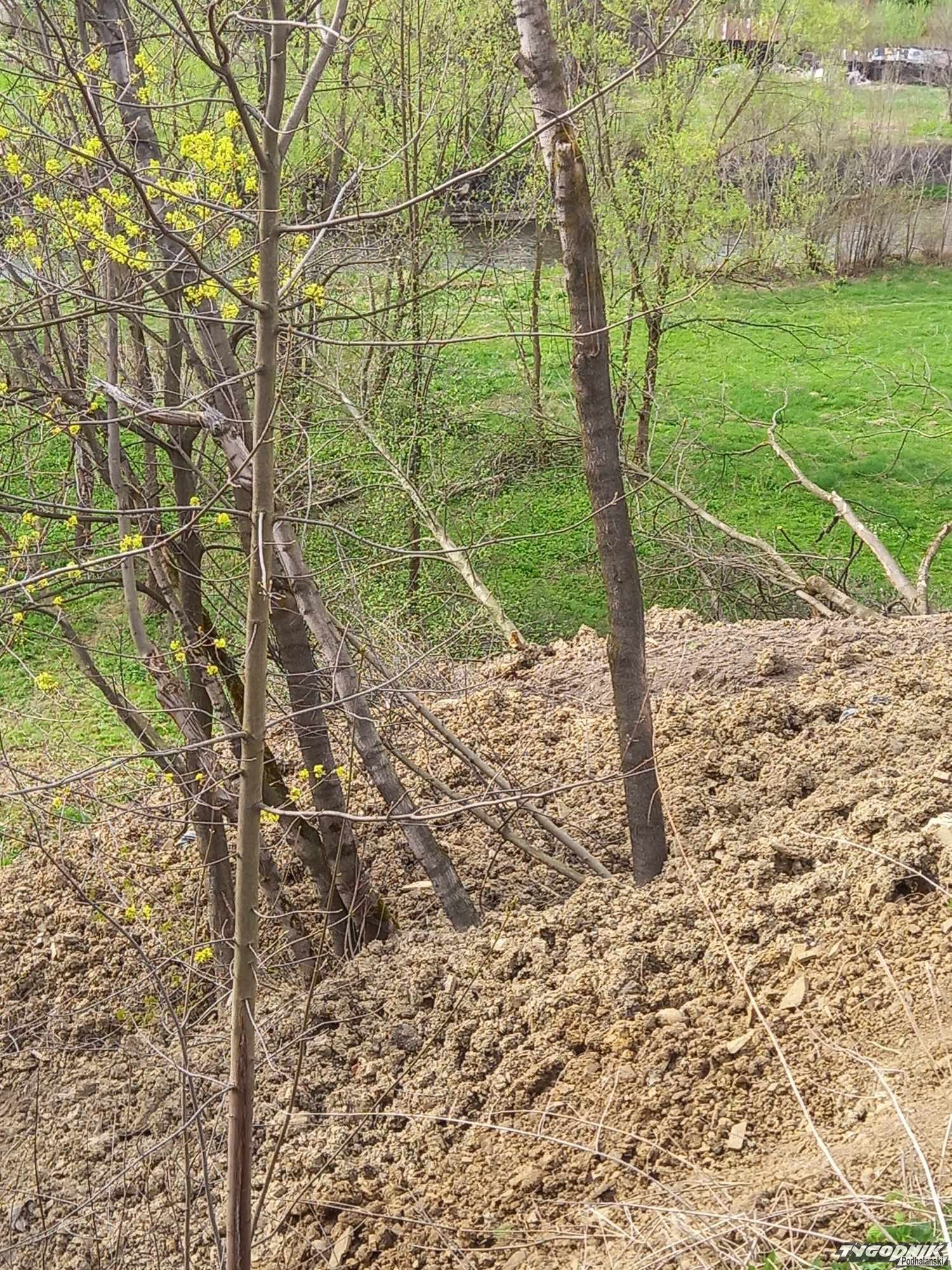 Podjeżdżają ciężarówki i zrzucają ziemię