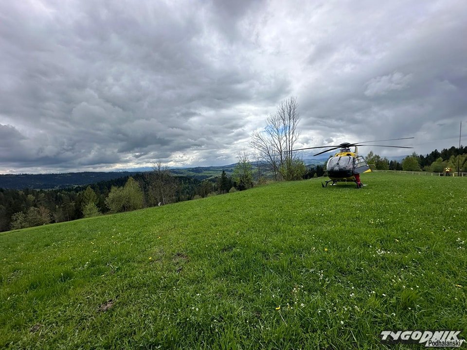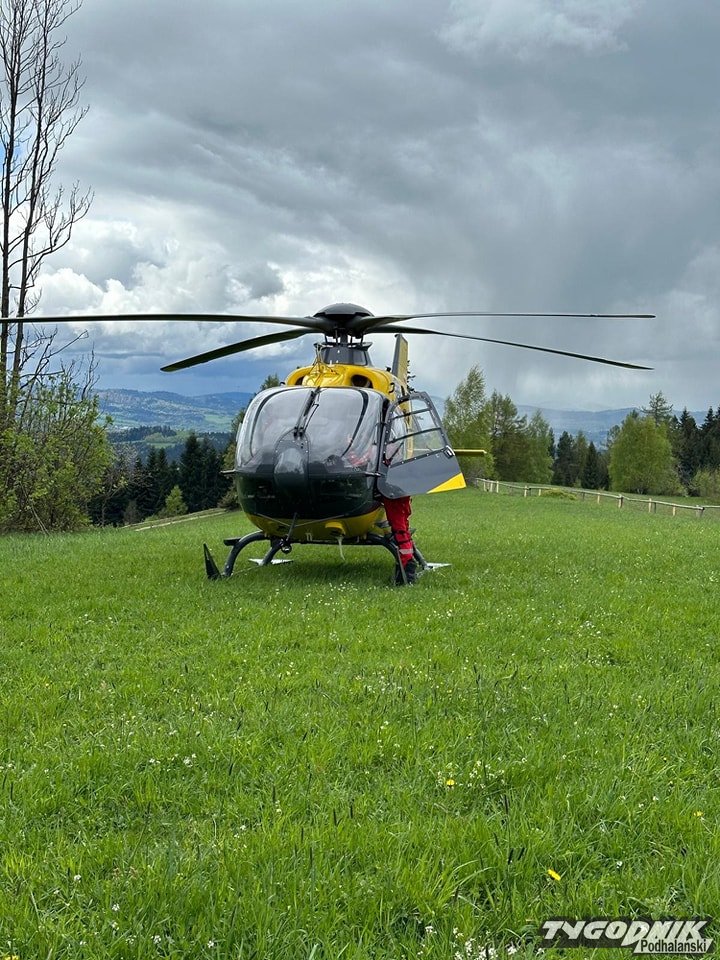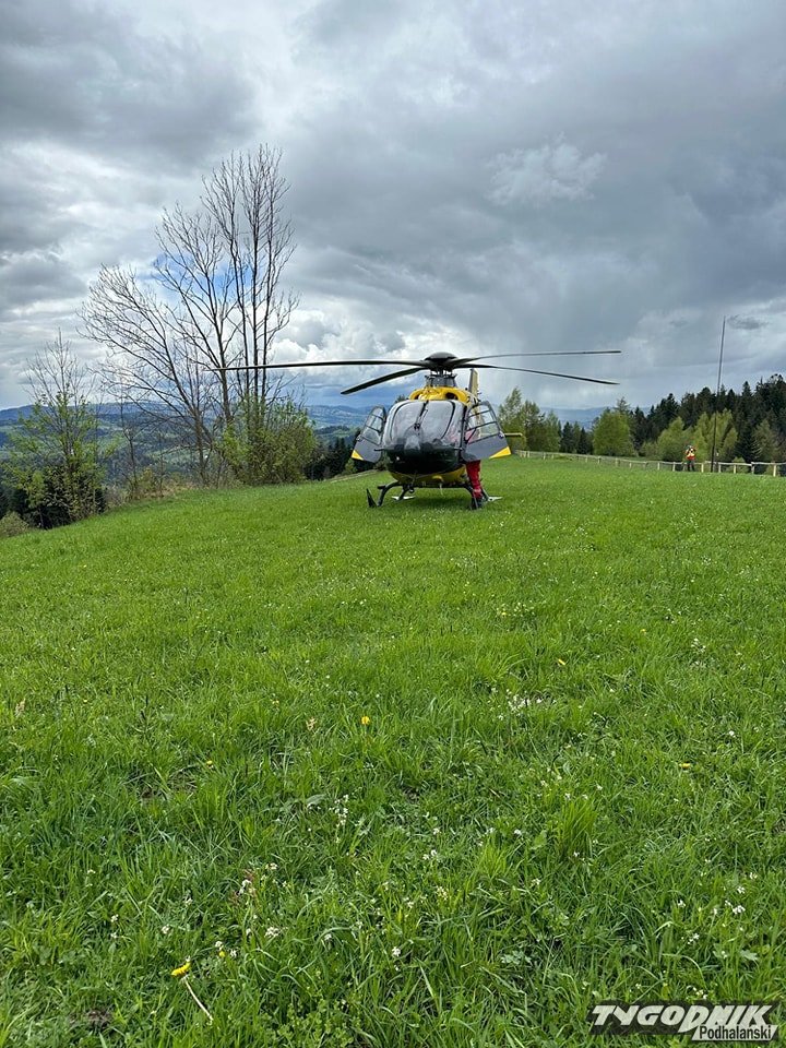 Po mężczyznę z zawałem serca przyleciał śmigłowiec ratowniczy.