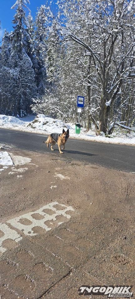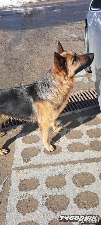Piękny owczarek niemiecki błąka się w okolicy Słodyczek w Nowem Bystrem.