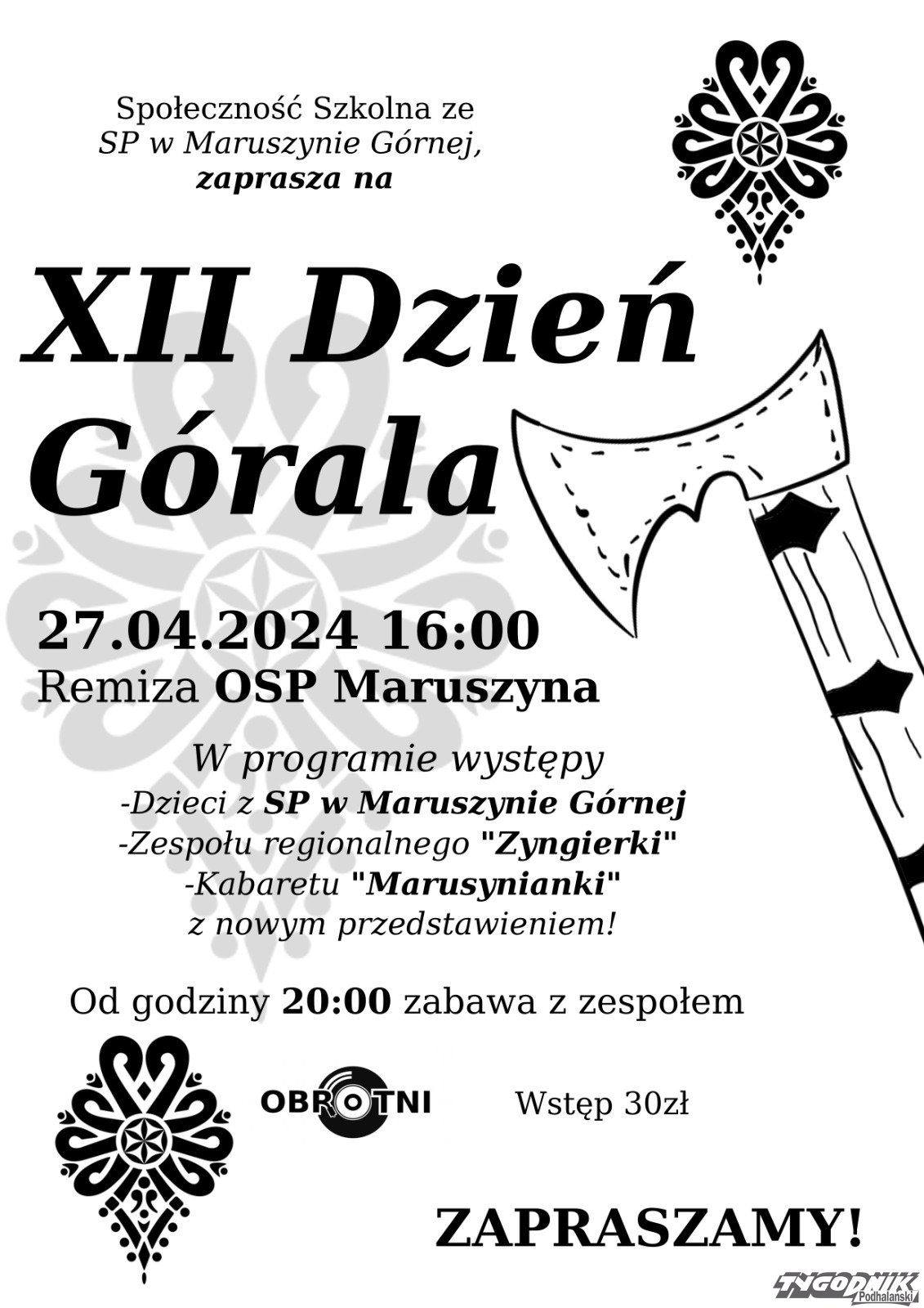 W sobotę 27 kwietnia w remizie OSP Maruszyna odbędzie się dzień Górala