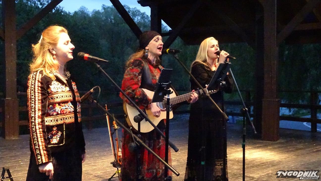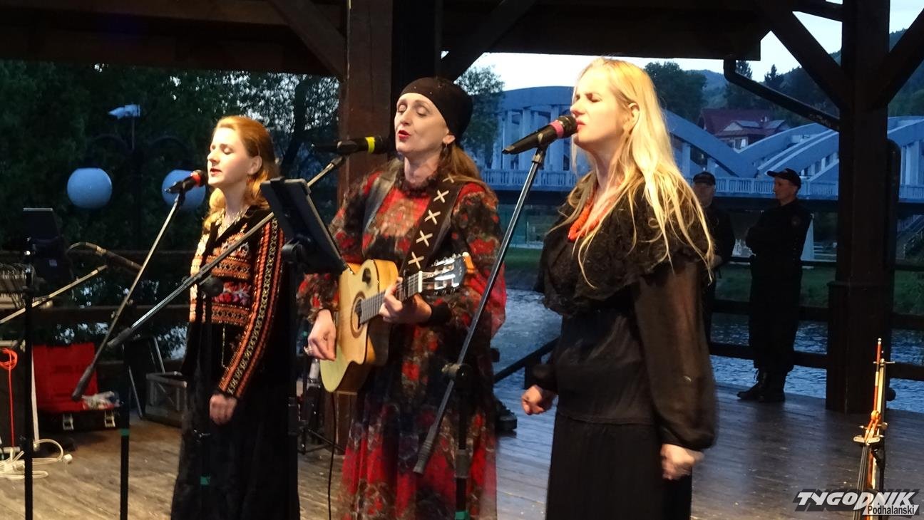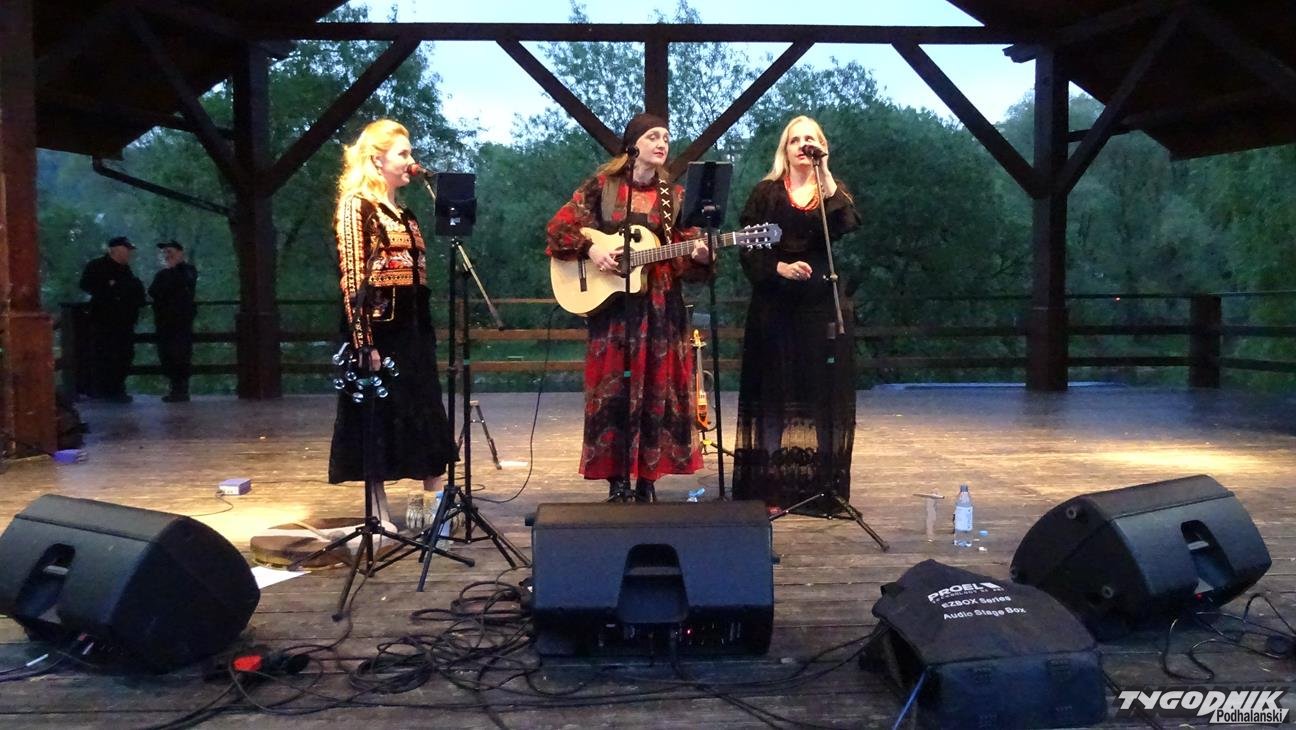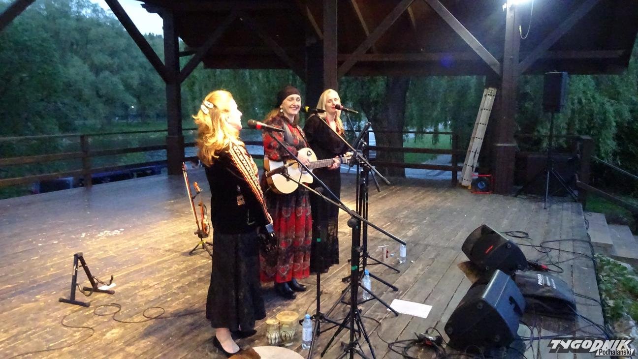 Z kolei zespół „Ładne Kwiatki”, który zagrał wieczorem, to stosunkowo świeży zespół, liczący zaledwie ok. dwóch lat, ale złożony z doświadczonych trzech utalentowanych i uroczych pieśniarek: Mirosławy Zaziąbło-Hubiak, wokalistki folkowej i ludowej z gminy Ochotnicy Dolnej, która jest także nauczycielką śpiewu górali ochotnickich i ma własny zespół folkowy „Tryptyk”, Sylwii Basty Silvany ze stolicy Podhala, multiinstrumentalistki, autorki tekstów, pieśniarki i kompozytorki, śpiewającej różnorodną muzykę od poezji śpiewanej po worldmusic, która wraz z mężem Samaelem Francisco Flores Rodriguez z Meksyku tworzą zespół „CorNatura”, oraz Zuzanny Kuliszewskiej, śpiewaczki operowej (sopran) z Krakowa, która choć od 10 lat koncertuje i uczy śpiewu klasycznego, to jednak folklor nie jest jej obcy, bo w dzieciństwie występowała w zespole regionalnym „Pojawienie”. Muzyka tych trzech Pań to niezwykły folkowy bukiet, energetyzujący i bardzo kobiecy. Śpiewają one bowiem muzykę polską ludową oraz etniczną z różnych stron świata, jak choćby ze Słowacji, Serbii, czy Ukrainy. Warto podkreślić, że choć zespół jest nowy, to jednak każda z Pań może poszczycić się dużym dorobkiem artystycznym i scenicznym. Ich zespół to wręcz zderzenie różnych muzycznych temperamentów i artystycznych osobowości. Każda z kobiet ma inny głos: klasyczny operowy - Zuzanna Kuliszewska, z góralskim zaśpiewem - Morosława Zaziąbło - Hubiak i liryczny, w stylu fado - Sylwia Basta Silvana. Jak powstał zespół tych trzech tak różnych osobowości? Otóż panie spotkały się przypadkiem. Zuzanna z Mirą podczas przesłuchań do Ogólnopolskiego Konkursu Wokalnego im. Stanisława Jopka, a Sylwia z Mirą na Jarmarku Podhalańskim w Nowym Targu. Na pomysł połączenia sił i głosów wpadła Mira. Po raz pierwszy niezwykłe Trio zaśpiewało wspólnie u Miry w Tylmanowej. Panie upamiętniły swe śpiewanie wspólnym zdjęciem na tle krzaka róży. Zdjęcie umieszczone na FB otrzymało komentarz „Ładne kwiatki” i tak Panie nazwały swój zespół.