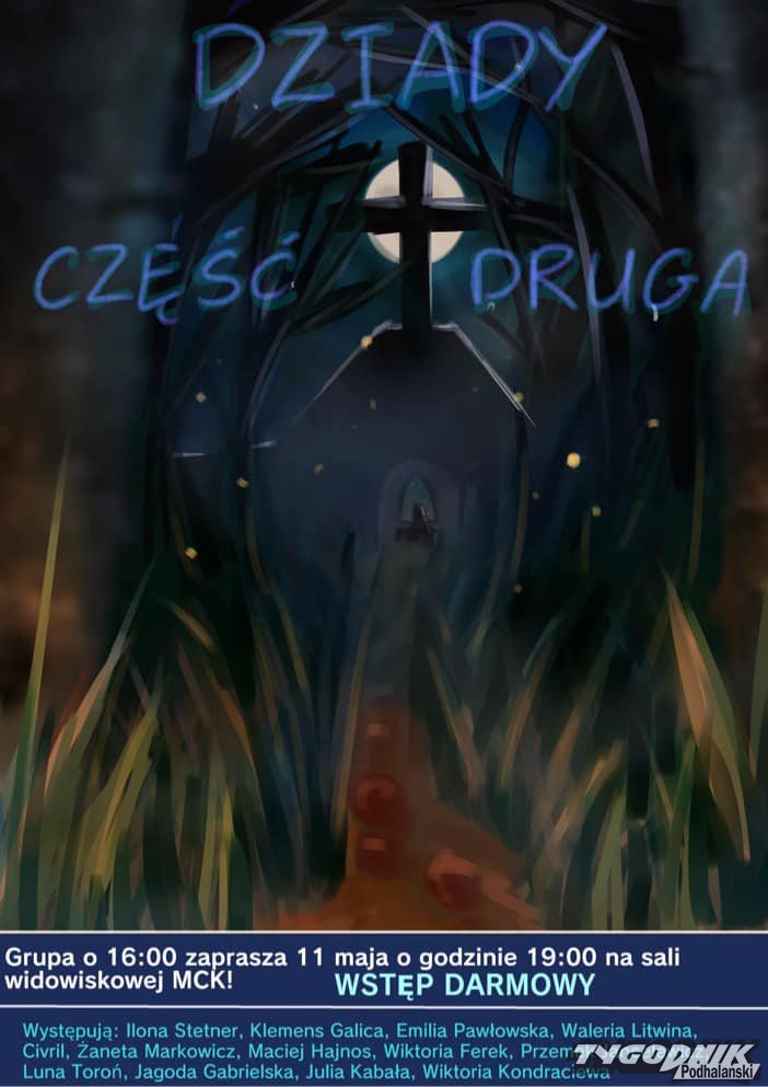 Już w najbliższą sobotę 11 maja o godz. 19 działająca przy MCK Grupa o Szesnastej pokaże premierowo "Dziady". Spektakl wyreżyserował opiekun młodych aktorów Marek Wrona z Teatru Witkacego.