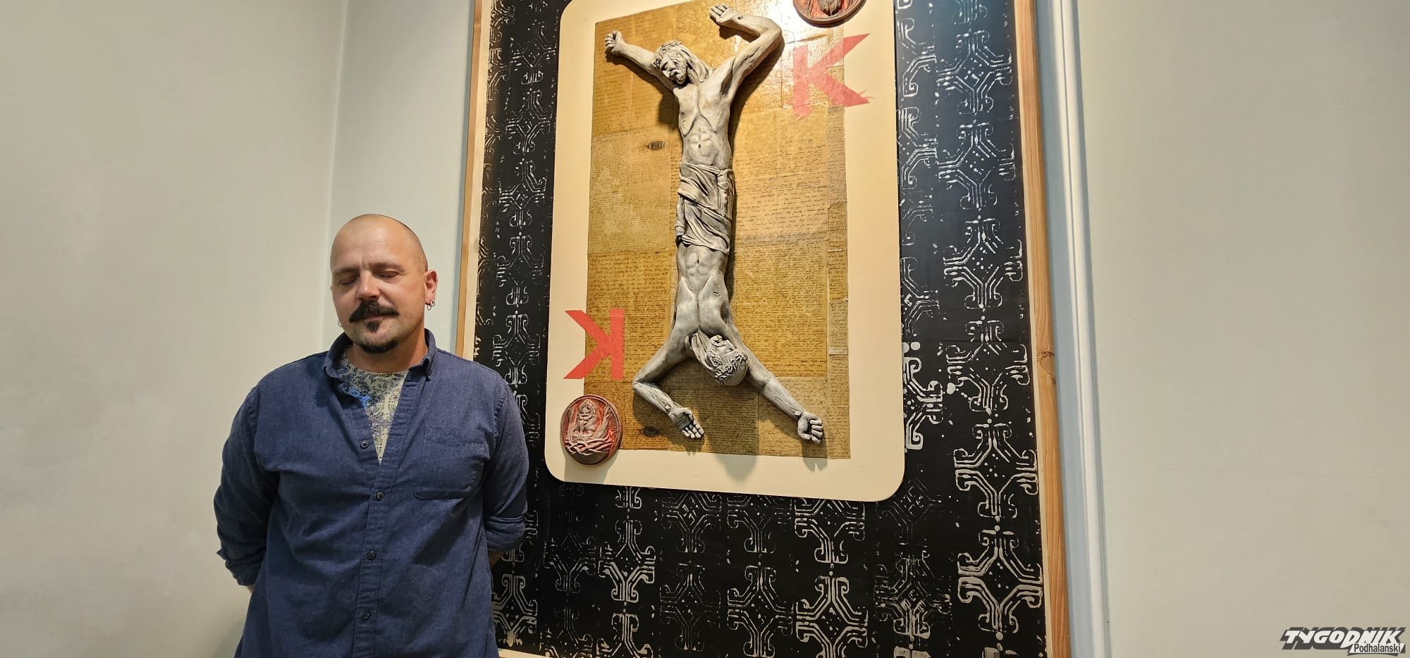 Na jednym z obrazów figurki ukrzyżowanego Chrystusa zamieniają się w kartę do gry - figurę karcianego króla. - Gramy naszą religią, naginamy religię do naszych potrzeb, robią to chociażby politycy - zdradza swoją interpretację sam artysta.