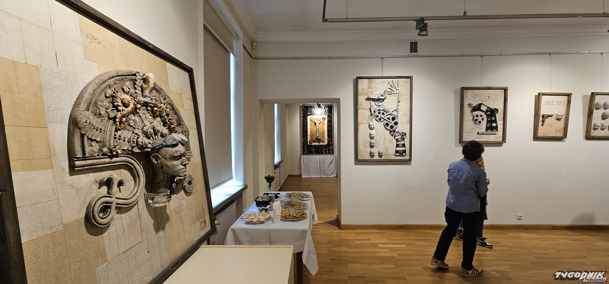 Bywalcy "Plamy" mają możliwość obserwacji sztuki Gabriela Szyrszenia już od kilkunastu lat. Pub przy ul. Kościelnej stał się żywą galerią, w której przestrzenne kolaże czyli asamblaże są główną formą wyrazu artysty. - Ta technika ewoluowała, razem z rozwojem tego miejsca, aż zorientowałem się, że jestem uzależniony od tej techniki. Daje mi taką wolność, że już zostanę asamblażystą - podkreślał Gabriel Szyrszeń podczas piątkowego wernisażu w Ratuszu. - Zawsze uważałem, że artysta powinien nam konwertować rzeczywistość, opowiadać o naszych tragediach i radościach poprzez swoje filtry - mówił artysta.