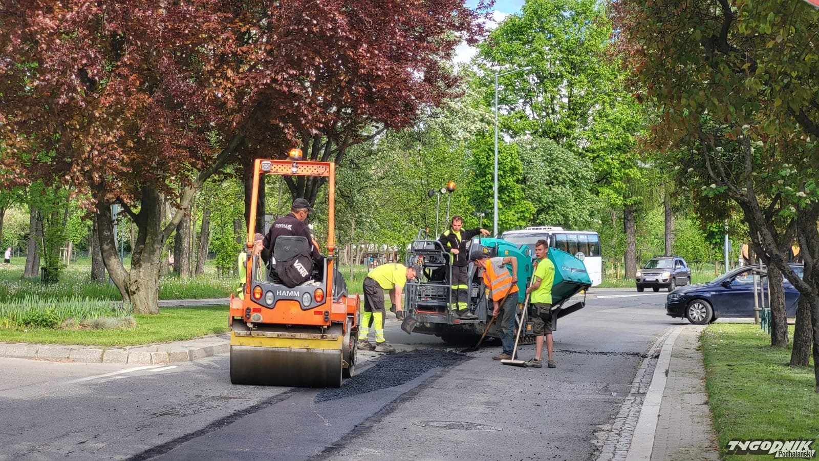 Drogowcy od rana uzupełniają braki w asfalcie na Alejach 3 Maja.