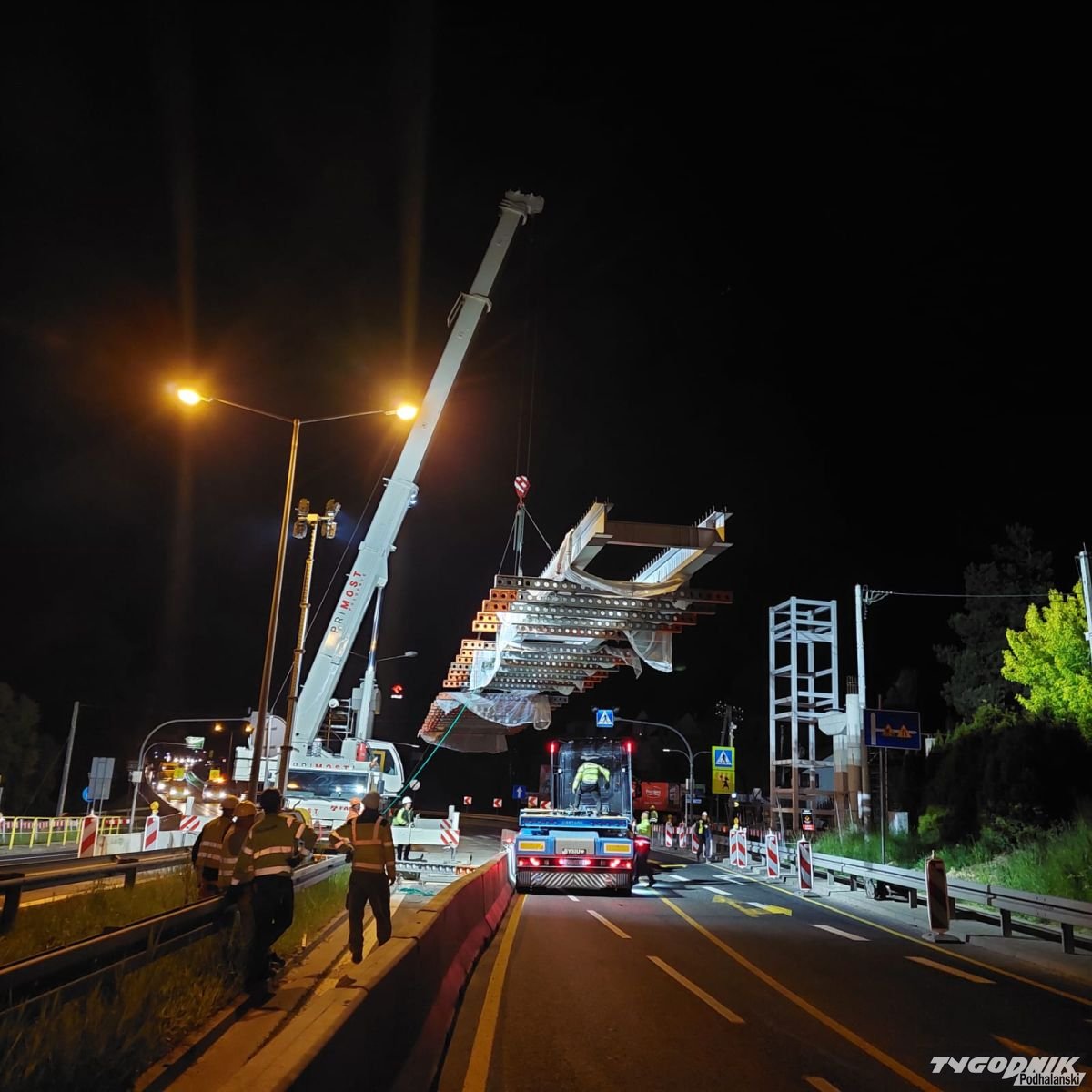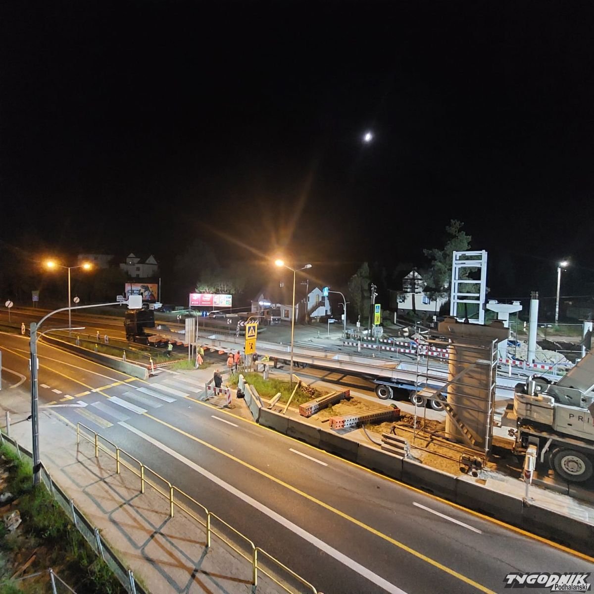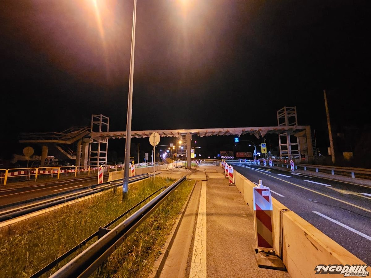 A wszystko przez zaplanowane nocą roboty przy budowie kładki dla pieszych w Mogilanach. Operacja wymagała całkowitego zamknięcia ruchu na zakopiance w okolicy budowy.