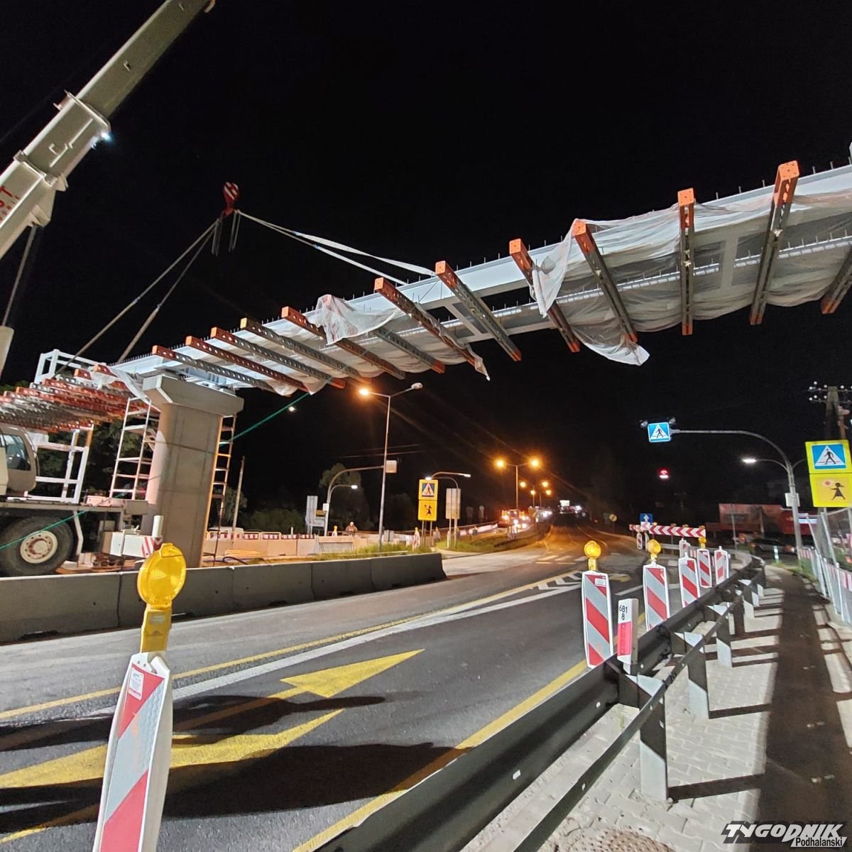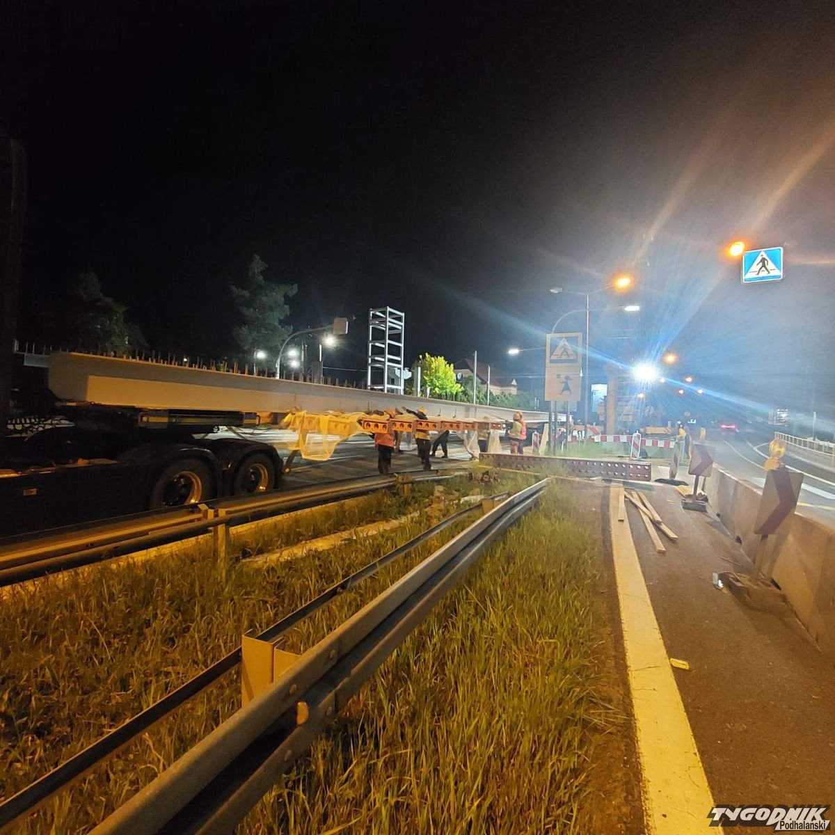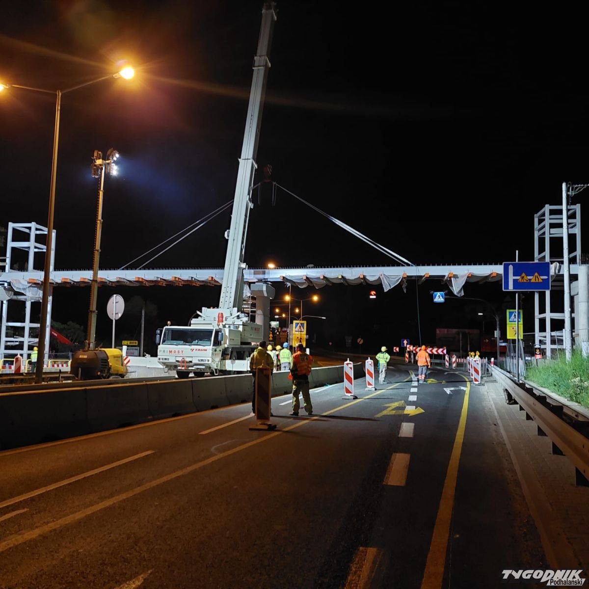 A wszystko przez zaplanowane nocą roboty przy budowie kładki dla pieszych w Mogilanach. Operacja wymagała całkowitego zamknięcia ruchu na zakopiance w okolicy budowy.
