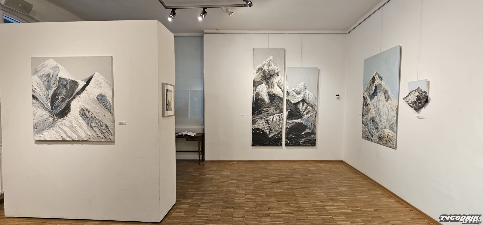 Ta wystawa, to opowieść o GóRACH MOICH, własnych, wyciągniętych z serca wspomnień, przetworzonych przez pryzmat uczuć. W fakturach obrazów można znaleźć opowieści i przeżyte historie. Tam na kartkach hula wiatr, a na obrazach czuć promienie ciepłego słońca. Czerń ma głębie przeżytych chwil, a na obrazach czuć promienie ciepłego słońca, a szarość mieni się odcieniami brudnego wiosennego śniegu… w tych obrazach jest wszystko co znalazłam w górach, każde moje uczucie, każdy skrawek mojego ja. Odkrywam przed Wami rąbek tajemnicy – zapraszam do mojego świata".