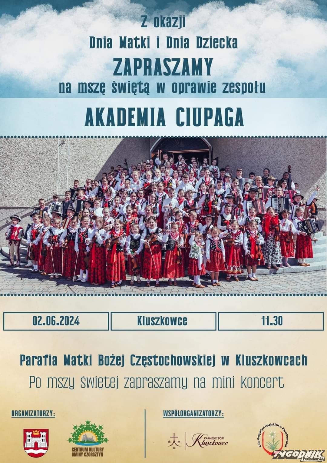 W Kluszkowcach mieszkańcy będą świętować wspólnie Dzień Matki i Dzień Dziecka. Z tej okazji wystąpi w niedzielę 2 czerwca Akademia Ciupaga z Łącka,
