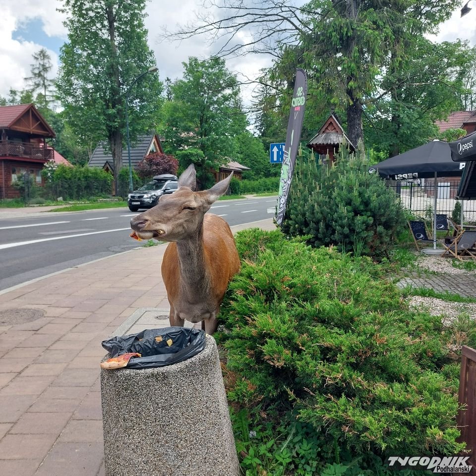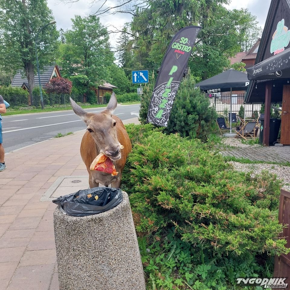 - Po raz pierwszy w życiu widziałam coś takiego - przyznaje turystka z Bydgoszczy, która w niedzielne popołudnie wybrała się w Zakopanem na Krupówki. Przy jednym z ulicznych koszy żerowała łania. Dzikie zwierzę raz po raz zaglądało do śmietnika. Po chwili wyciągnęło z kubła kawałek pizzy. Łania pałaszowała ją z wielkim zapałem. - Tam była prawie cała pizza, którą ktoś wyrzucił, a to zwierzę zajadało - dodaje autorka zdjęć.