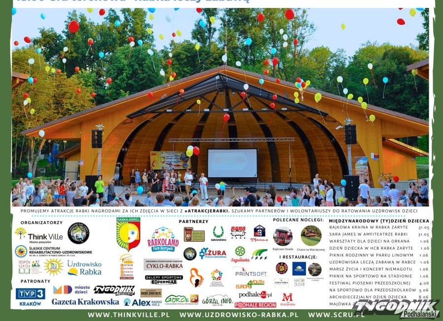 Think Ville - Miasto pomysłów zaprasza do Rabki-Zdroju w sobotę 1.06 od godz. 15 do wspólnego świętowania Dnia Dziecka na zdrowo i sportowo. W planach piknik w parku linowym, występy w amfiteatrze i wizyty w Uzdrowisku.