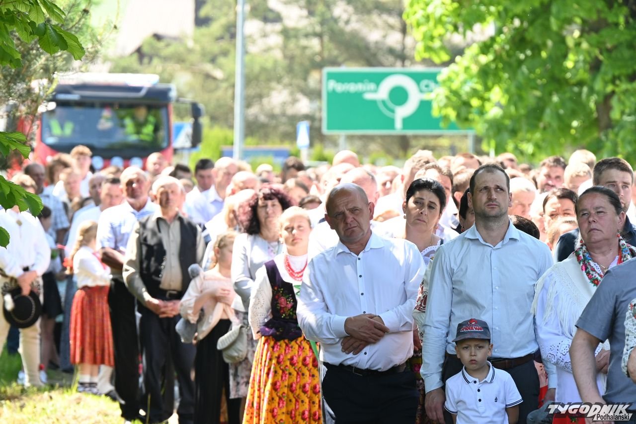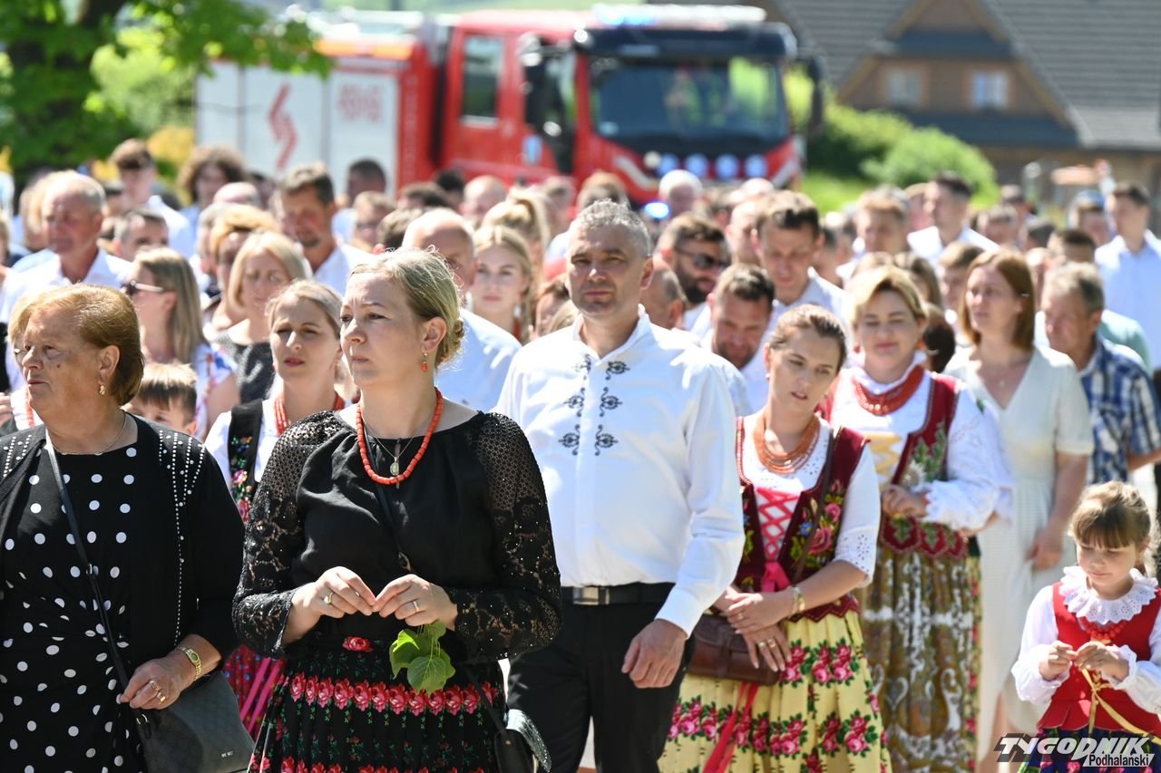 Górale w strojach regionalnych tłumnie uczestniczyli w procesji Bożego Ciała w parafii w Miętustwie, jej trasa wiodła od świątyni do ronda na Poronin i Chochołów i z powrotem do kościoła.