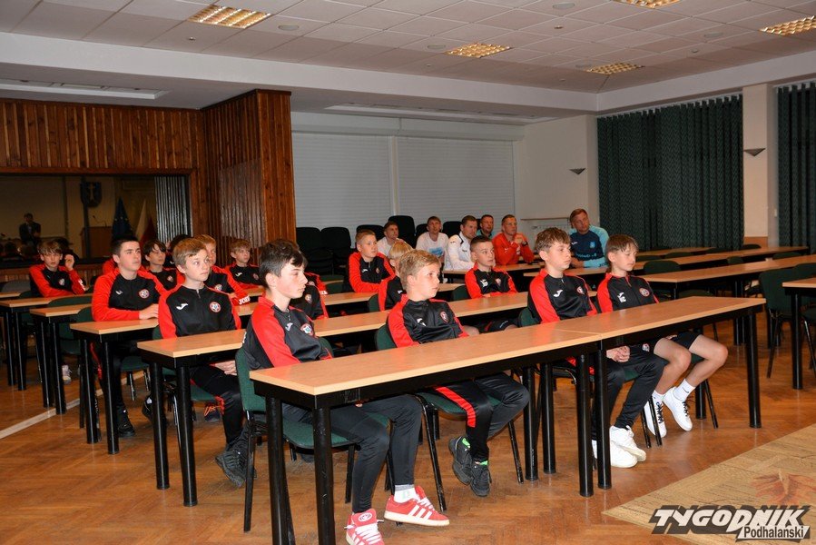 Młodzi sportowcy przekazali burmistrzowi petycję w sprawie przebudowy stadionu piłkarskiego