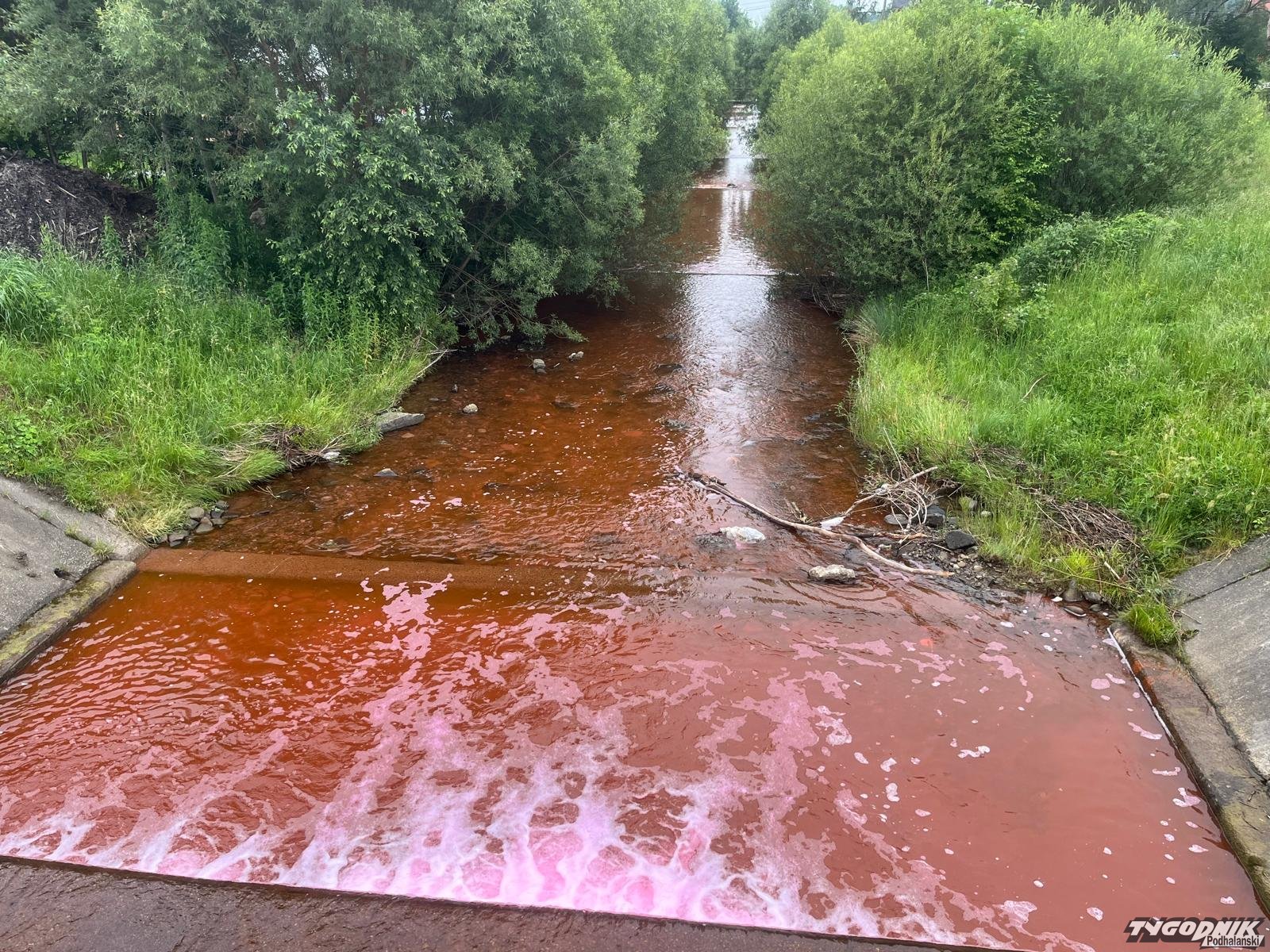 Zdjęcie czerwonej rzeki wygląda jak z horroru.