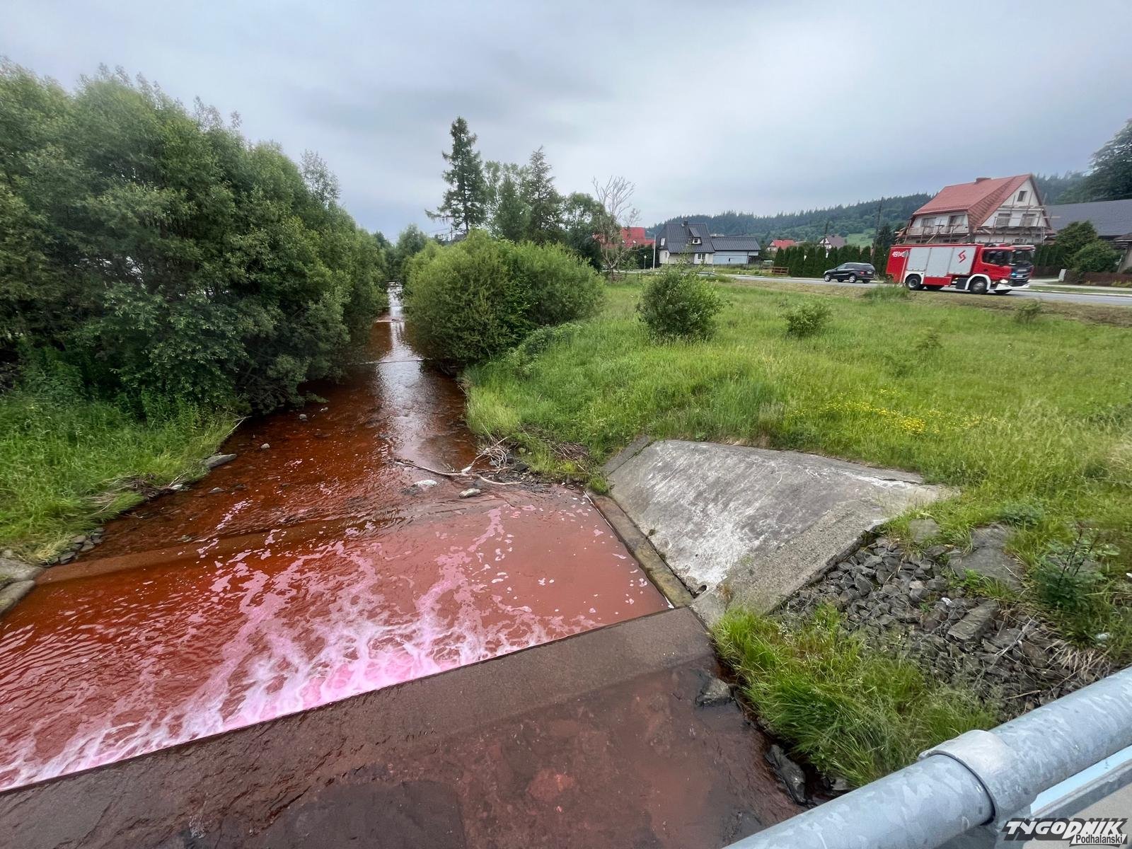 Czerwona rzeka w Zubrzycy Górnej. Powołano sztab kryzysowy (WIDEO)