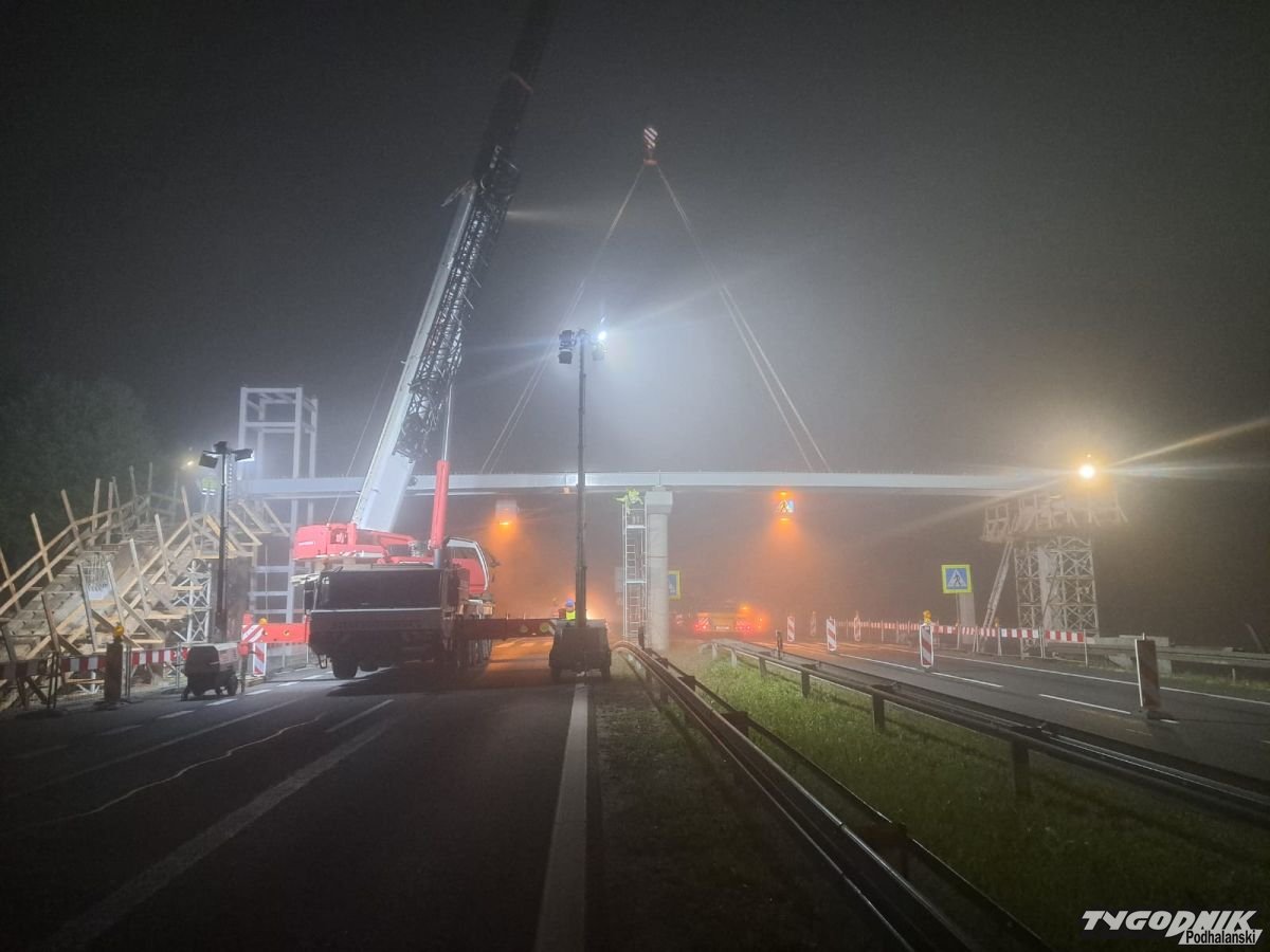 Przez ponad godzinę ruch w jakąkolwiek stronę zakopianki był niemożliwy. Minionej nocy drogowcy ustawiali ośmiotonowa kładkę na podporach w Głogoczowie.