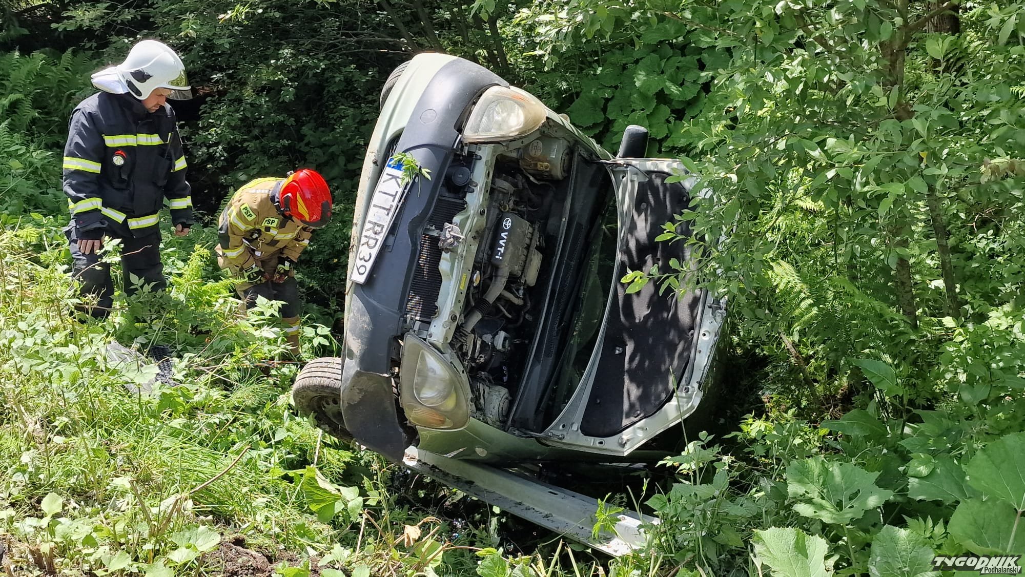 Wypadek na Lichajówkach. Auto w rowie (WIDEO)