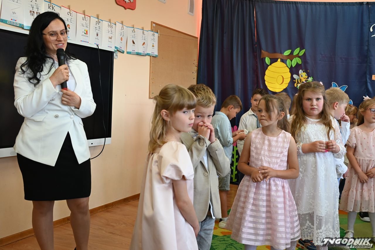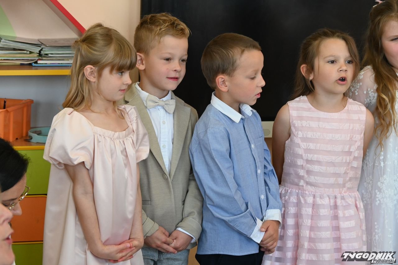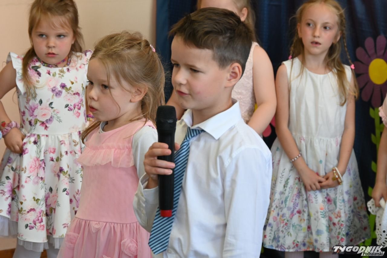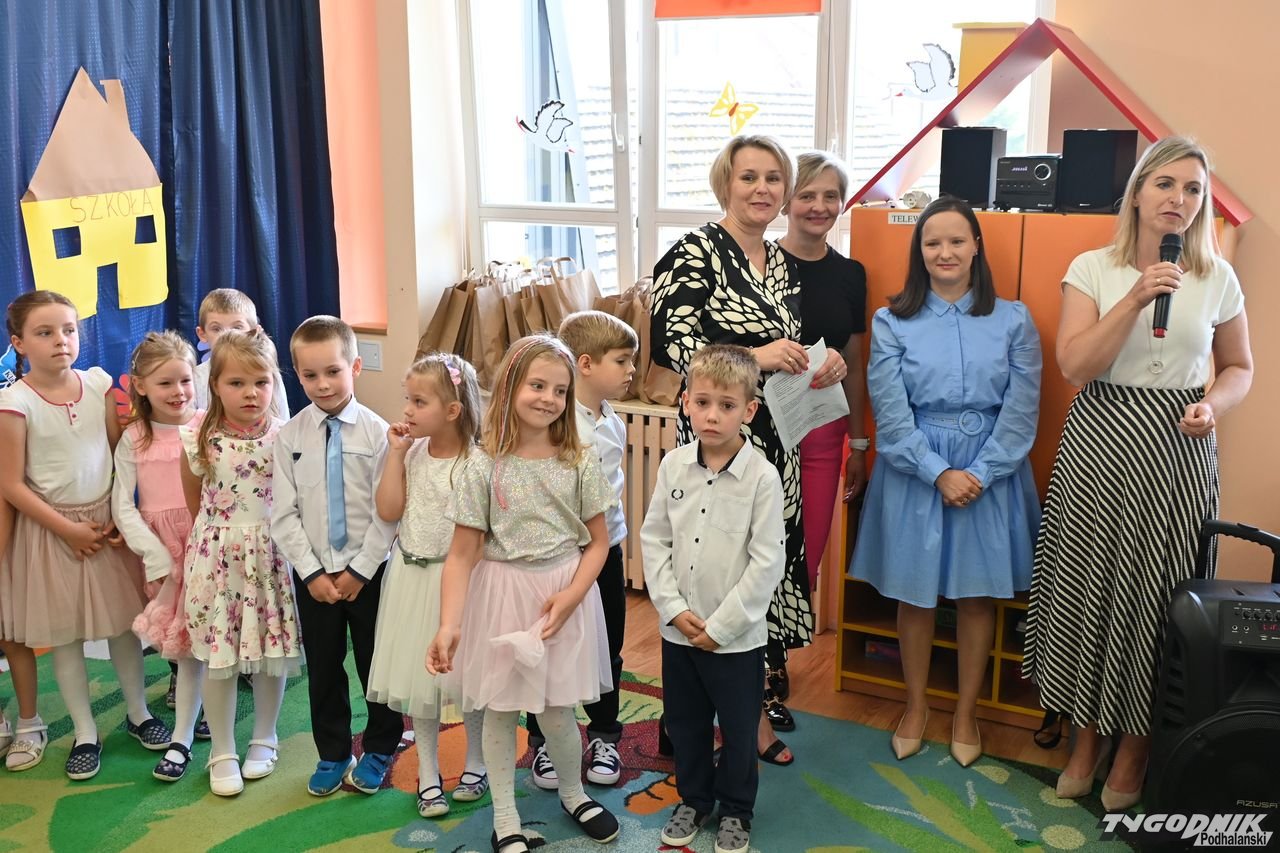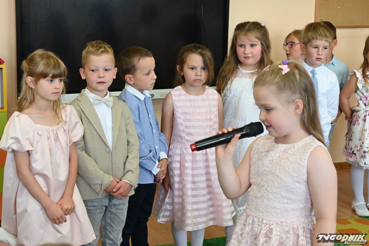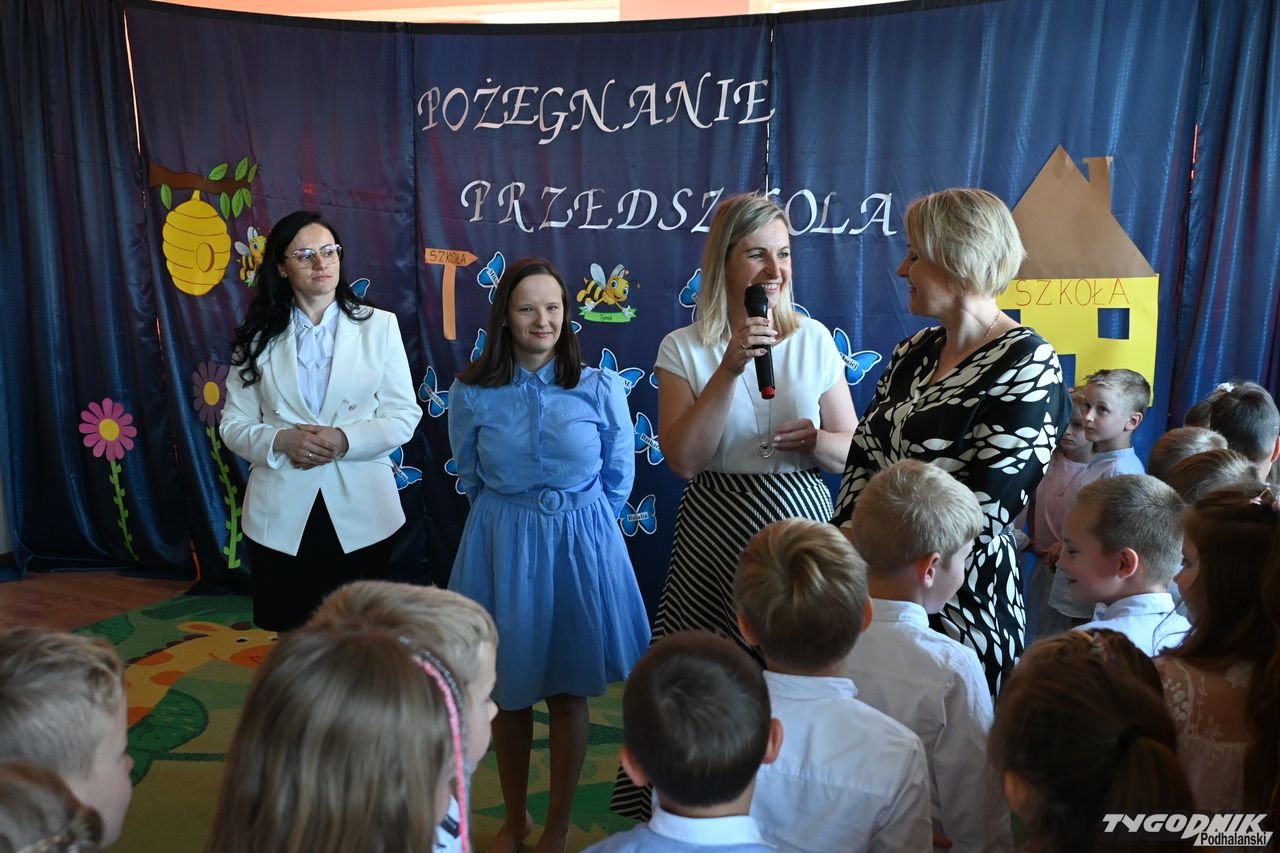 Wszystkich zgromadzonych pozdrowiła Aneta Karkula, p.o. dyrektora placówki. Słowa podziękowań wypowiedziała zaś Katarzyna Miętus, wychowawczyni grupy "Motylki". Głos zabrały również panie Katarzyna Barnaś i Dominika Staszel związane z grupą zerówką. Rodzice nie zapomnieli także o drobnych upominkach i kwiatach dla pań wychowawczyń i całej kadry pedagogicznej, a także dla wszystkich innych pracowników przedszkola.