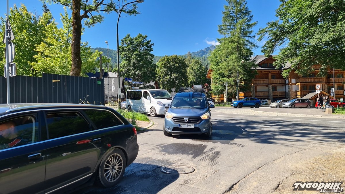 Po godz. 8 zgodnie z zapowiedziami w Zakopanem zamknięto rondo Jana Pawła II. Tworzą się korki.