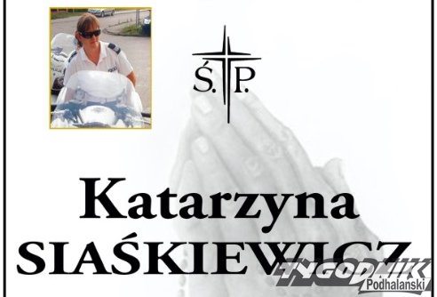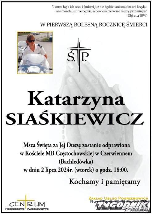 W kościele na Bachledówce 2 lipca we wtorek odprawiona zostanie msza święta w pierwszą rocznicę śmierci Katarzyny Siaśkiewicz, znanej nowotarskiej policjantki.