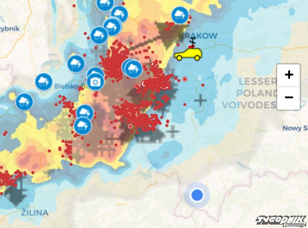 Przed godz. 22 front z mocnymi opadami deszczu i licznymi wyładowaniami atmosferycznymi dotarł nad Beskid Śląski.
