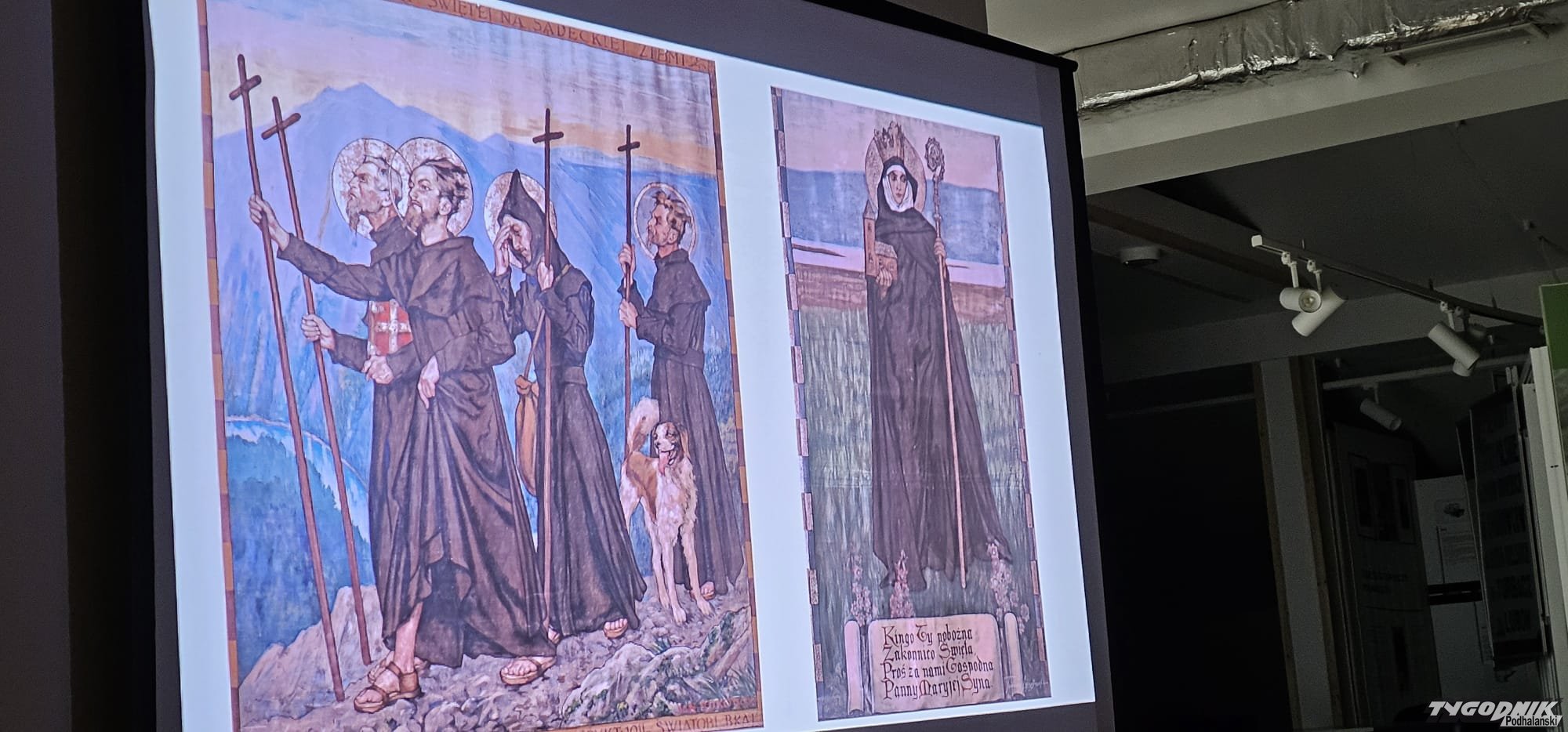 Prof. Artur Jurszczyn przybliżył słuchaczom życiorys Bukowskiego, podczas prezentacji pokazał jego różnorodną twórczość - od polichromii, witraży, obrazów olejnych, po ilustracje do książek, ekslibrisy oraz kalendarze, projekty mebli.