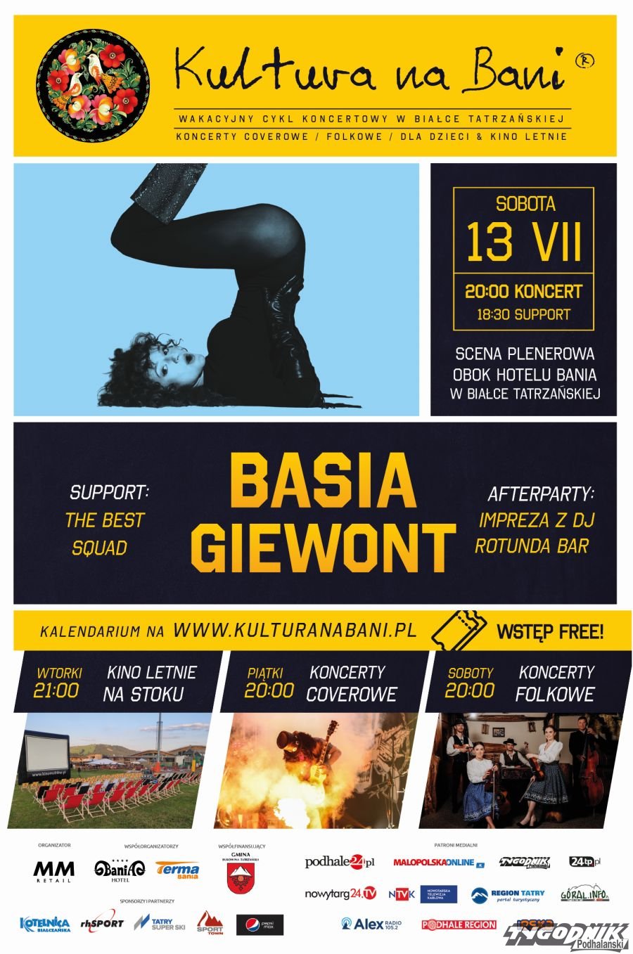 W sobotę 13.07 na scenie Kultury na Bani wystąpi zaś wokalistka Basia Giewont.