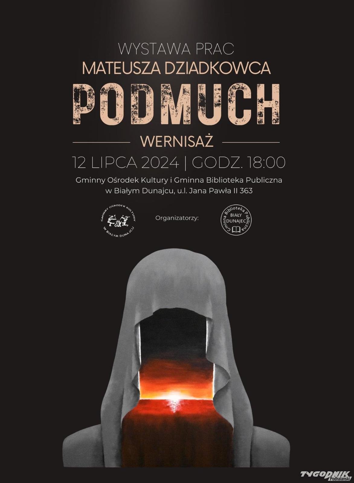 "Podmuch" to tytuł debiutanckiej książki Mateusza Dziadkowca i tytuł wystawy jego prac. Wernisaż już w najbliższy piątek 12 lipca w białodunajeckim GOK-u.