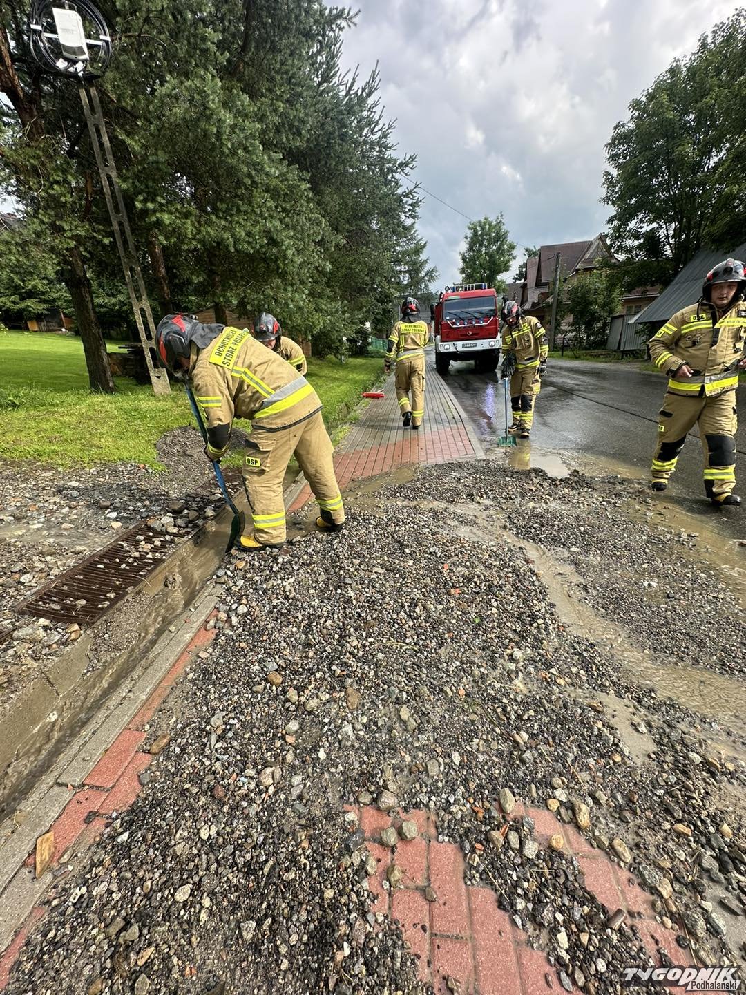 Wielkie sprzątanie po nawałnicy, przetykanie przepustów, czyszczenie dróg i chodników