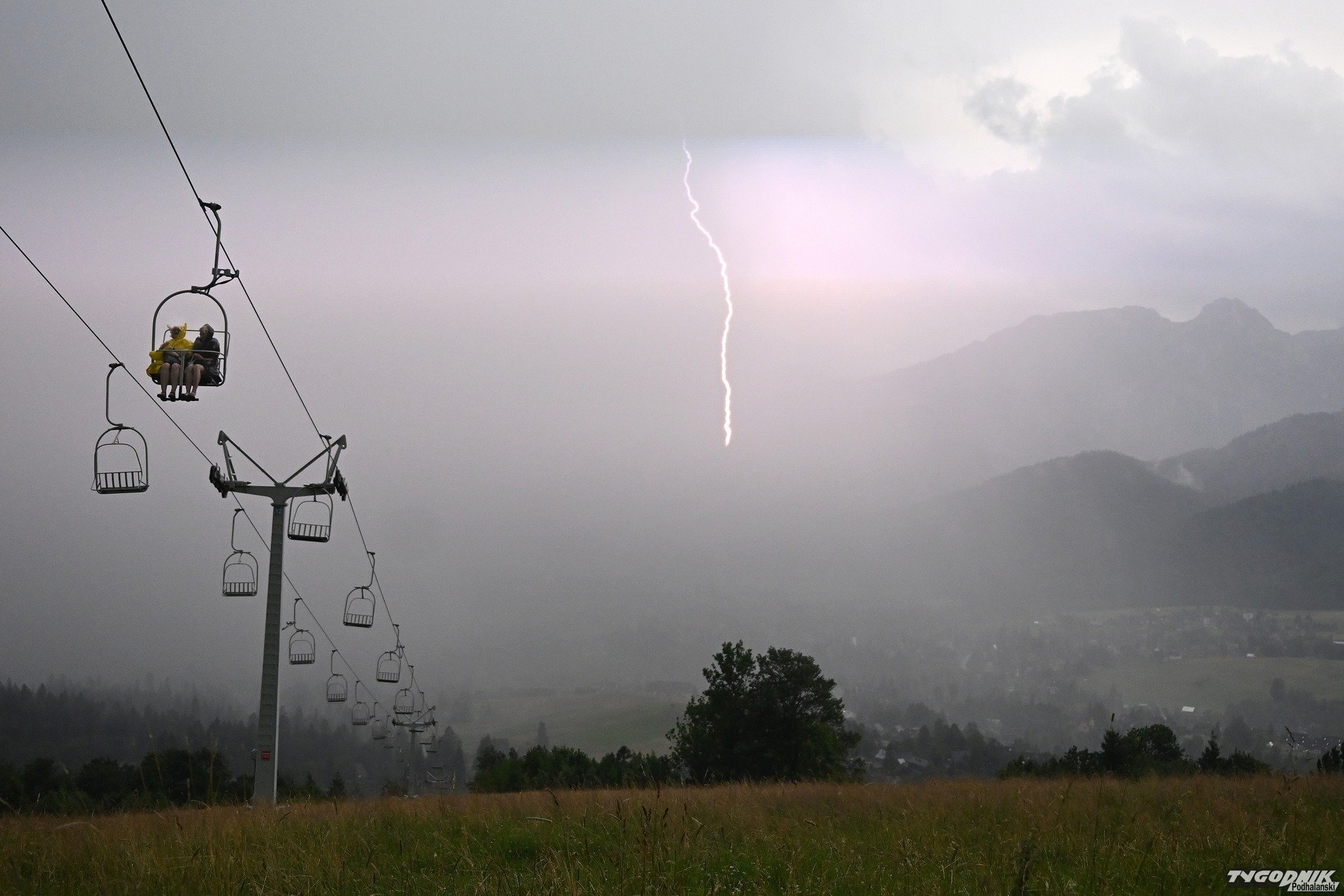 Dookoła uderzają pioruny, a turyści jadą wyciągiem