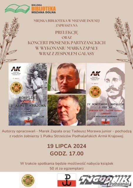 Prelekcja i koncert piosenki patriotycznej w wykonaniu Marka Zapały w Miejskiej Bibliotece w Mszanie Dolnej.