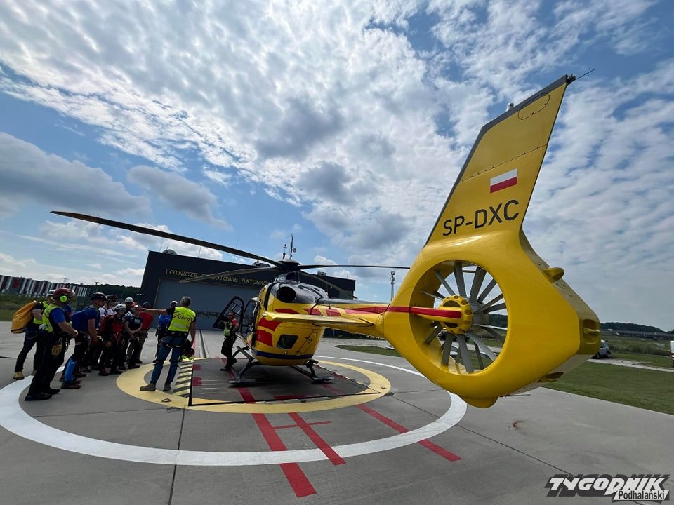 Podczas szkolenia ratowników GOPR omówione zostały zasady bezpieczeństwa przy użyciu helikoptera.