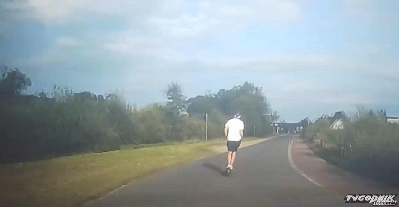 Jak nie poruszać się po drodze jadąc na hulajnodze (WIDEO)