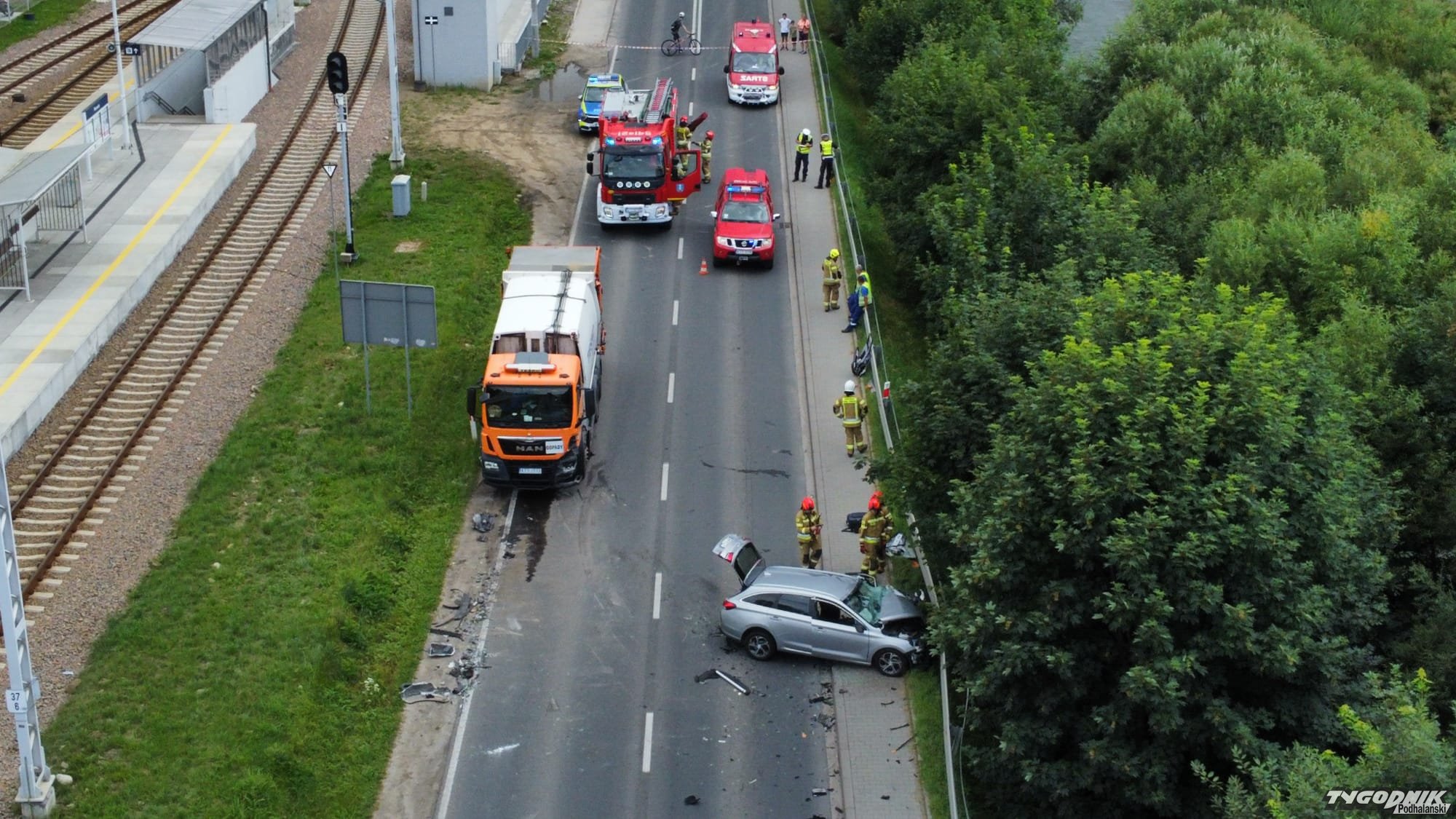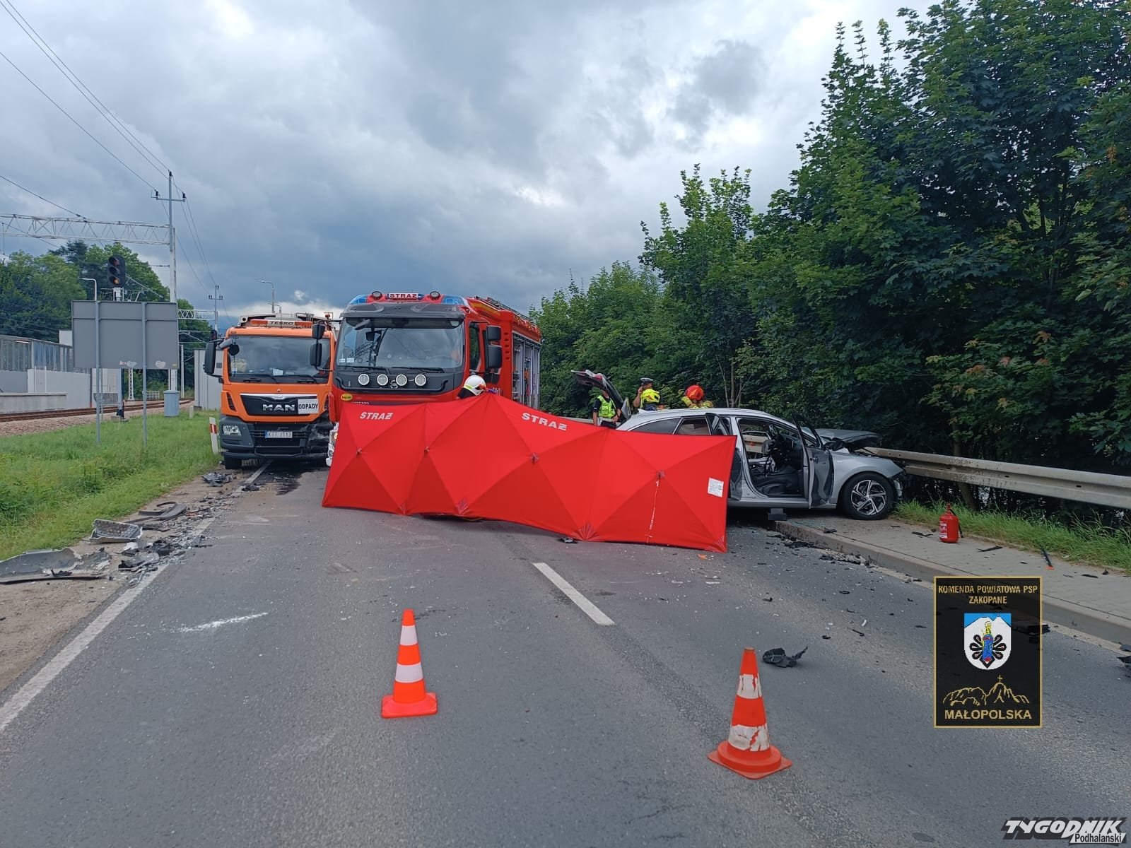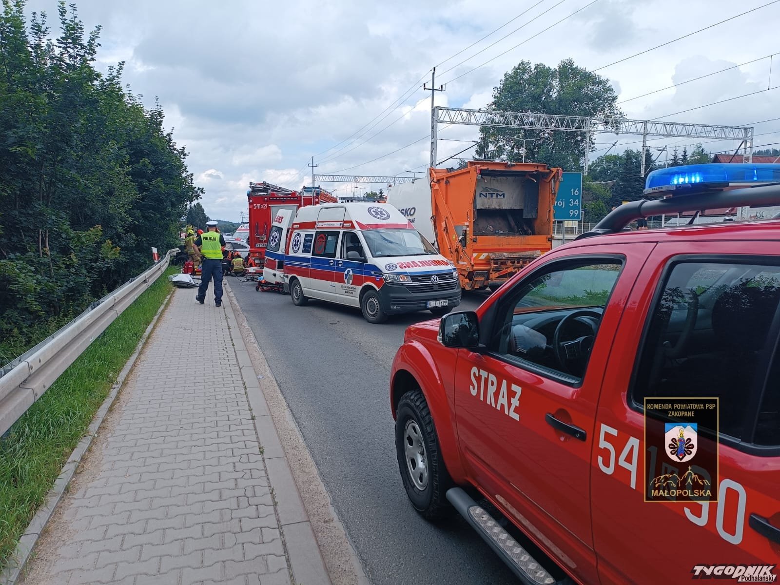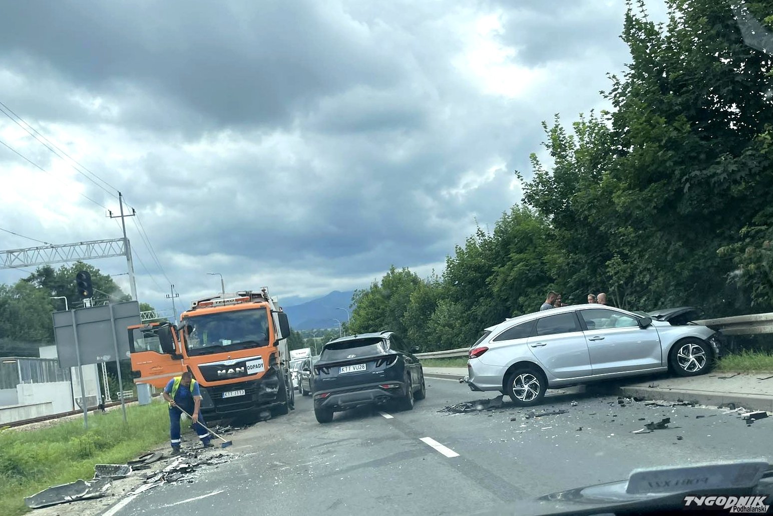 Ok. godz. 14:20 w Poroninie na zakopiance zderzyło się auto osobowe ze śmieciarką.